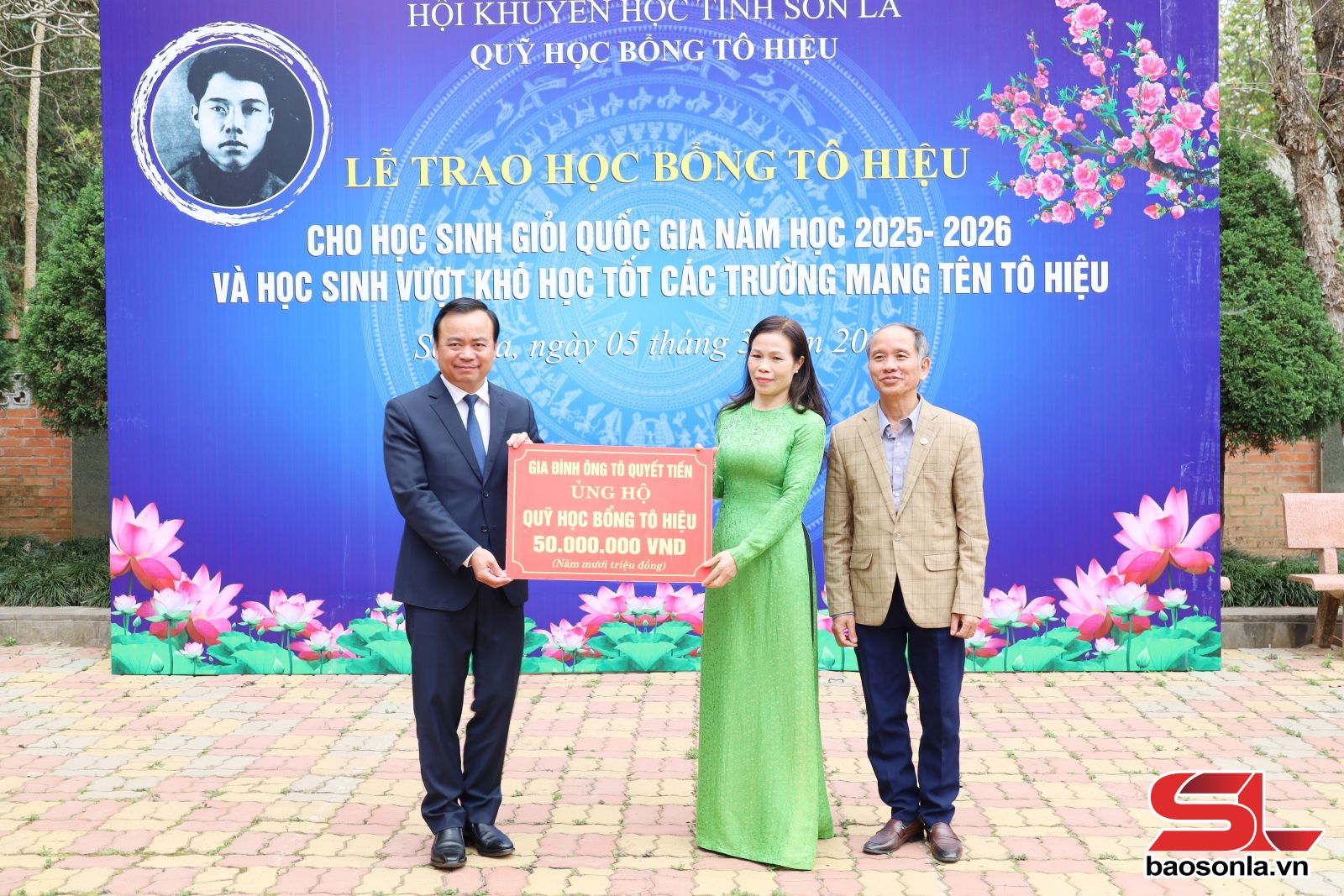 Quỹ học bổng Tô Hiệu được thành lập ngày 10/1/2019, đến nay đã vận động được hơn 18 tỷ đồng. Từ nguồn lãi của quỹ, Hội Khuyến học tỉnh đã trao 6.154 suất học bổng, với tổng kinh phí gần 5 tỷ đồng, hỗ trợ học sinh đạt thành tích cao trong các kỳ thi học dinh giỏi quốc gia, học sinh nghèo vượt khó, vận động viên, giáo viên và các cá nhân đạt thành tích trong các cuộc thi; đồng thời giúp đỡ học sinh vùng biên giới, học sinh có hoàn cảnh khó khăn và lưu học sinh Lào đang học tập tại Sơn La.
