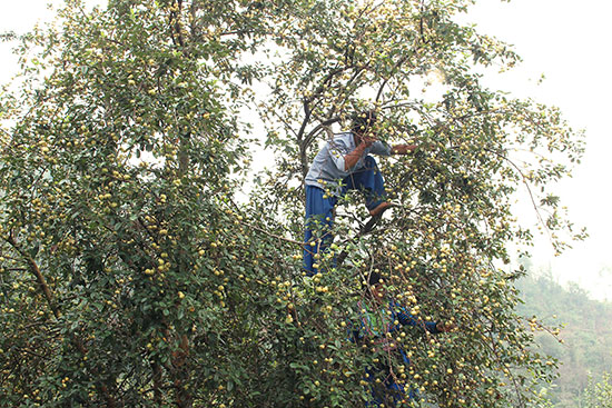 Nhân dân bản Nậm Lộng, xã Hang Chú (Bắc Yên) thu hái sơn tra. Ảnh: Phan Trang