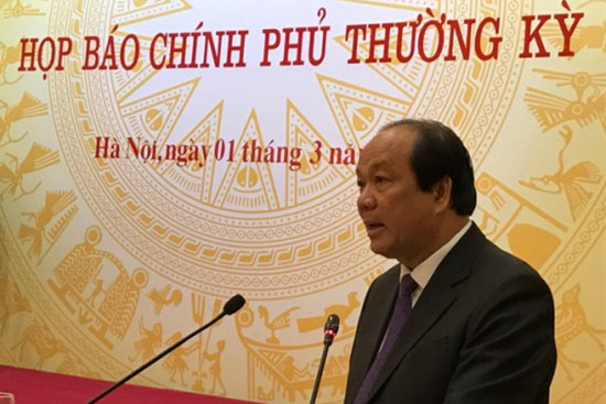 Chiều tối 1/3, Phiên họp báo Chính phủ thường kỳ tháng 2/2017 đã diễn ra dưới sự đồng chủ trì của Bộ trưởng, Chủ nhiệm Văn phòng Chính phủ, Người phát ngôn của Chính phủ Mai Tiến Dũng và Bộ trưởng Bộ Thông tin và Truyền thông Trương Minh Tuấn.