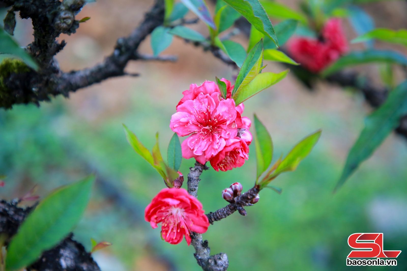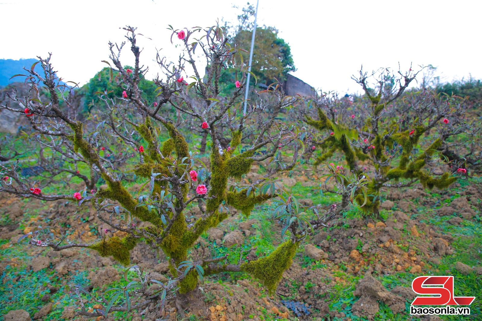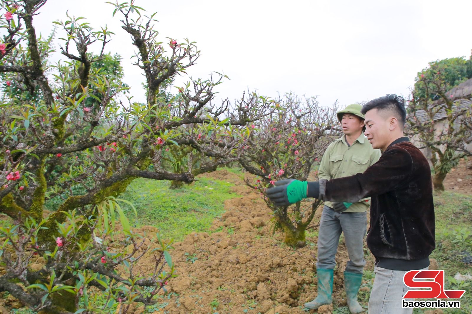 Có mặt tại vườn đào Thất Thốn của anh Nguyễn Xuân Tuấn, phường Thảo Nguyên những ngày này, chứng kiến không khí tất bật chăm sóc cây để phục vụ thị trường Tết Nguyên đán. Khu vườn hơn 1ha quy hoạch bài bản, nơi quy tụ hàng trăm gốc đào với đủ mọi dáng thế khác nhau. Khác với những vườn đào thông thường, những gốc đào ở đây mang vẻ ngoài xù xì, thô ráp, lớp vỏ đen sẫm nhuốm màu thời gian, nhiều cây mốc thếch, rêu phong bám đầy từ gốc đến ngọn.