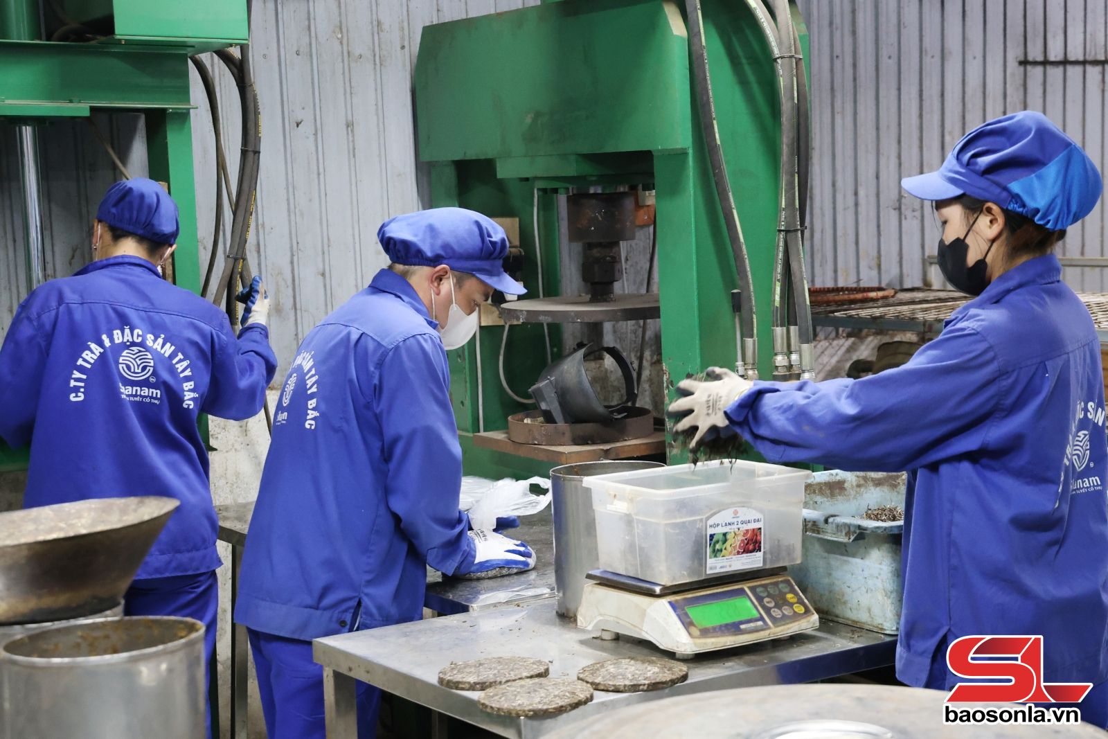 Bà Phạm Thị Việt Hà, Phó Giám đốc Công ty TNHH Trà và Đặc sản Tây Bắc, cho biết: Mục tiêu của TAFOOD không chỉ sản xuất trà mà còn xây dựng thương hiệu trà đặc sản gắn với vùng chè cổ thụ Tà Xùa. Doanh nghiệp chú trọng bảo tồn nguồn nguyên liệu tự nhiên, đồng thời liên kết với người dân tổ chức sản xuất theo hướng bền vững. Để bảo đảm chất lượng sản phẩm, Công ty phối hợp với các hộ trồng chè hướng dẫn kỹ thuật thu hái, bảo quản nguyên liệu và kiểm soát quy trình sản xuất. Búp chè được thu hái thủ công theo tiêu chuẩn, sau đó đưa về xưởng chế biến trong ngày để giữ trọn hương vị tự nhiên. Quy trình sản xuất được kiểm soát chặt chẽ từ làm héo, vò, lên men đến sấy khô, tạo ra những sản phẩm trà có chất lượng ổn định.
