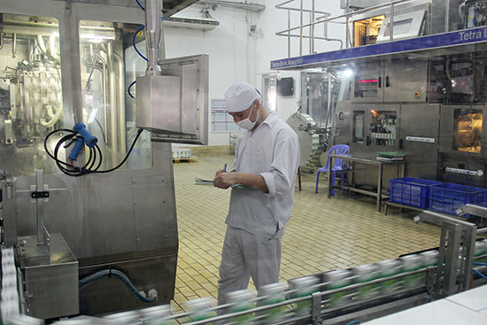 Dây chuyền chế biến sữa tại Công ty cổ phần Giống bò sữa Mộc Châu.