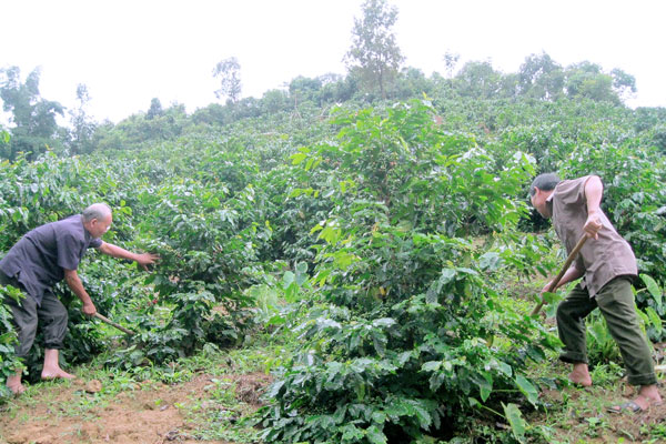 Nông dân xã Chiềng Ve (Mai Sơn) trồng cà phê trên đất dốc.