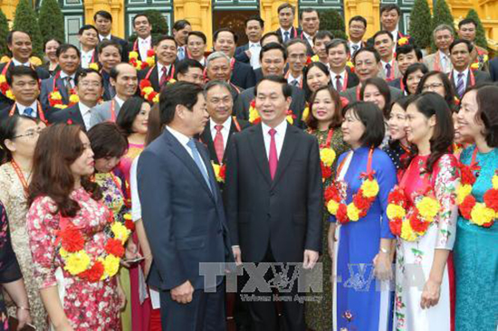 Hướng tới kỷ niệm 87 năm Ngày thành lập Đảng Cộng sản Việt Nam (3/2/1930 - 3/2/2017), 10 năm thành lập Đảng bộ Khối Doanh nghiệp Trung ương (11/4/2007 - 11/4/2017), chiều 4/1, tại Phủ Chủ tịch, Chủ tịch nước Trần Đại Quang đã có buổi gặp mặt với 60 Bí thư chi bộ tiêu biểu xuất sắc của Đảng bộ Khối Doanh nghiệp Trung ương.