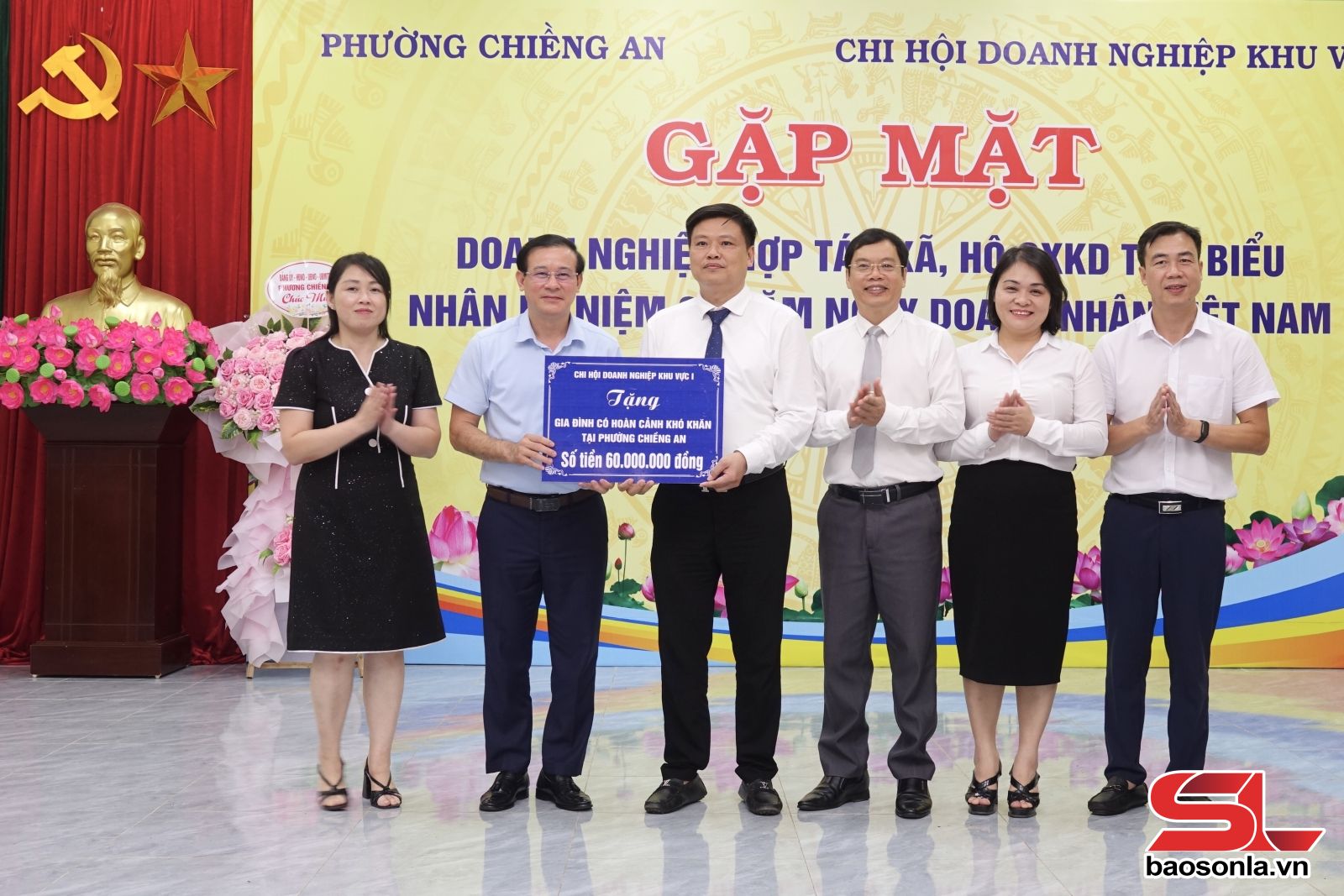 Nhân dịp này, Chủ tịch UBND phường Chiềng An tặng giấy khen cho 10 tập thể, cá nhân có thành tích tiêu biểu trong công tác phát triển doanh nghiệp, thực hiện chính sách an sinh xã hội, góp phần xây dựng và phát triển kinh tế, xã hội phường năm 2025; Chi hội doanh nghiệp khu vực I kết nạp 10 hội viên mới; Chi hội Doanh nghiệp và Công ty cổ phần Quỳnh Ngọc hỗ trợ xây dựng 2 nhà tình nghĩa cho hộ nghèo với tổng trị giá 120 triệu đồng.