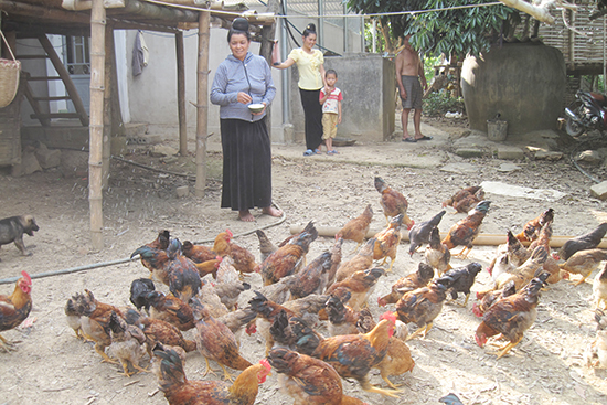 Mô hình chăn nuôi gà lai ri tại bản Cút, xã Mường Bon phát triển tốt.