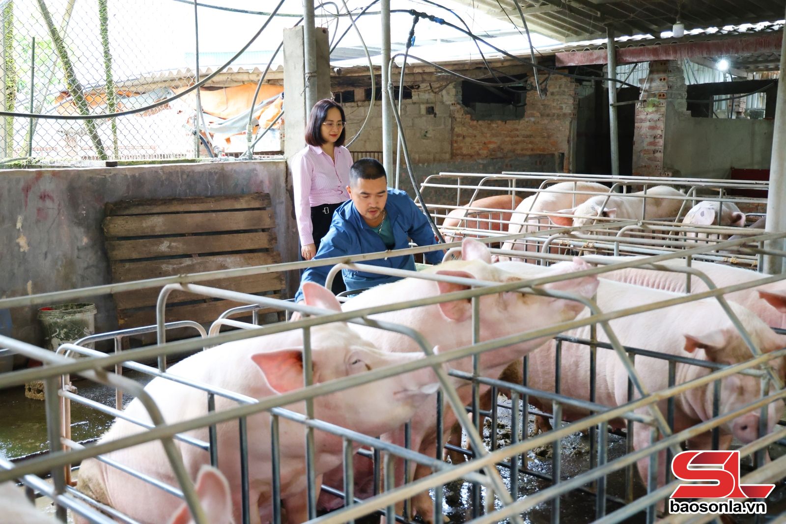 Nông dân xã Mường Cơi đầu tư nuôi lợn sinh sản từ nguồn vốn vay Ngân hàng CSXH.