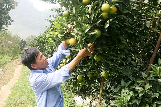 Nông dân xã Mường Thải (Phù Yên) chăm sóc vườn cam theo tiêu chuẩn VietGAP.