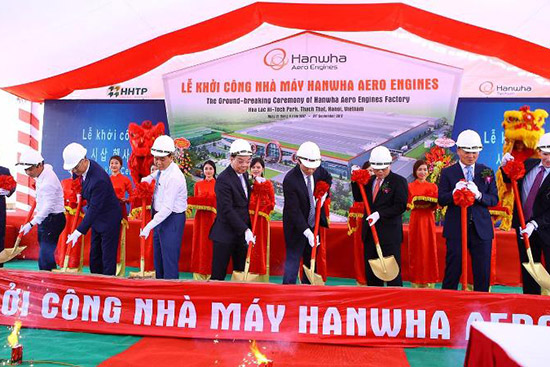 Trên cơ sở đó, nhà máy Hanwha Aero Engines được xây dựng với tổng mức đầu tư 200 triệu USD và có kế hoạch mở rộng đầu tư lên 260 triệu USD trên tổng diện tích khoảng gần 97.000m2 tại Khu Công nghệ cao Hòa Lạc để sản xuất các cấu kiện, linh kiện của động cơ máy bay. Các máy móc gia công tối tân và các thiết bị kiểm tra độ chính xác nhằm phục vụ việc sản xuất linh kiện động cơ siêu chính xác sẽ chiếm phần lớn các khoản đầu tư. Dự kiến cuối tháng 4/2018, nhà máy thứ nhất sẽ được hoàn thiện và đưa vào hoạt động, 2 nhà máy còn lại lần lượt được xây dựng và hoàn thành vào năm 2022. Dự án này sẽ giải quyết việc làm cho khoảng 1.000 lao động.