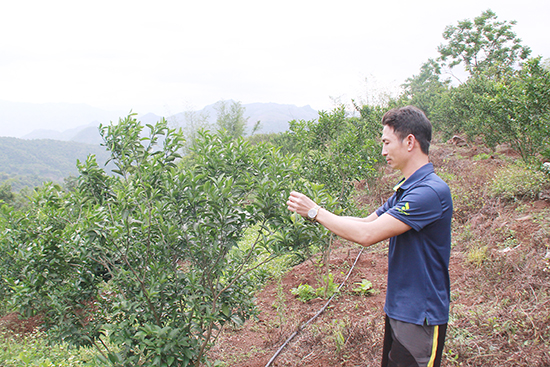 Năm 2008, anh Quân lập gia đình và định cư tại huyện vùng cao Bắc Yên. Nhận thấy trên địa bàn có lợi thế vườn đồi rộng rãi, khí hậu phù hợp với trồng cây ăn quả, nhưng người dân địa phương chỉ trồng một vụ ngô, còn lại để đất bỏ không, nên anh quyết định phát triển mô hình cây ăn quả. Đầu năm 2014, anh Quân lấy mẫu đất vườn tại một số khu vực trên địa bàn thị trấn gửi xuống Viện Nông nghiệp 1 để kiểm tra. Sau khi có kết quả cho thấy, đất ở Tiểu khu 2 khá phù hợp với các loại cây ăn quả như cam, quýt, anh đã thuê hơn 1 ha đất và đầu tư trên 40 triệu đồng thuê máy xúc đào hố, mua 200 cây cam đường canh, quýt thái về trồng. Đồng thời, đầu tư trên 40 triệu đồng làm hệ thống nước tưới tự động. Sau hơn một năm chăm bón, thấy diện tích cây ăn quả phát triển tốt, anh Quân tiếp tục mở rộng quy mô, trồng thêm các loại cây như táo đại, ổi, xoài Đài Loan, chanh bốn mùa… Đến nay, vườn cây ăn quả của gia đình anh đã có hơn 600 gốc cam đường canh, cam vinh và quýt thái, 120 cây táo đại, 100 cây bưởi, 130 cây ổi Đài Loan, trên 100 cây xoài Đài Loan. Một số loại cây đã cho thu hoạch như: Chanh đào bốn mùa, ổi, táo đại, cam canh và quýt thái. Năm 2016, gia đình anh Quân thu hoạch được gần 2 tấn quả các loại, với giá thu mua tại vườn trung bình 15.000 đồng/kg chanh đào, 35.000 đồng/kg cam canh, 40.000 đồng/kg quýt thái, 30.000 đồng/kg táo đại và ổi, trừ chi phí, thu nhập trên 50 triệu đồng.