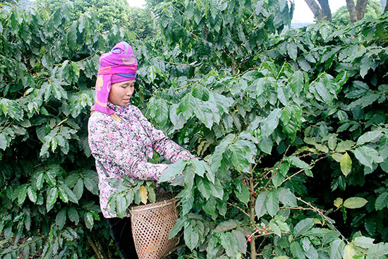Nông dân xã Chiềng Ban (Mai Sơn) thu hái cà phê.