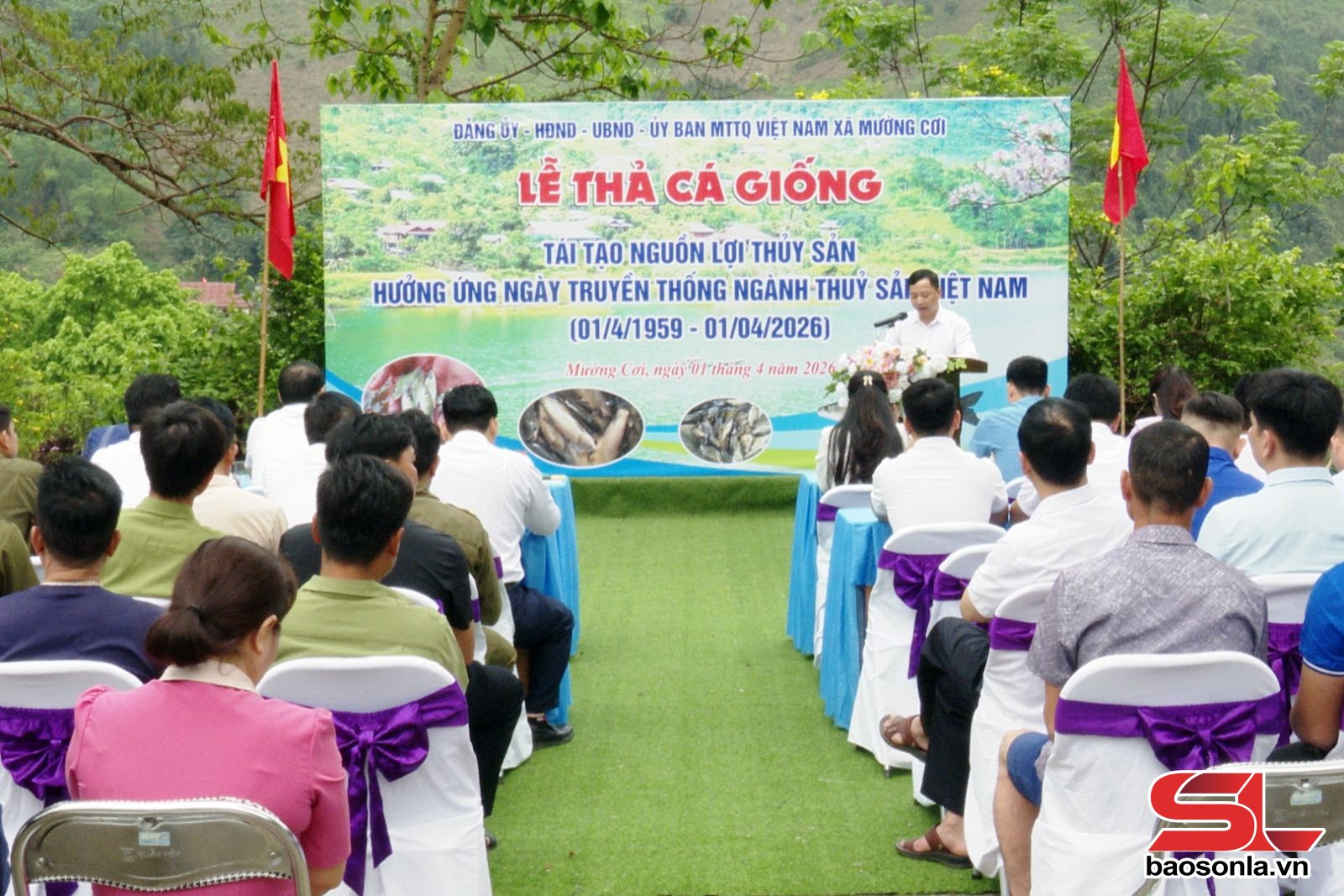 Ngày 1/4, tại bản Chiếu, xã Mường Cơi đã tổ chức lễ thả cá giống tái tạo nguồn lợi thủy sản cho hồ Suối Chiếu, hưởng ứng 67 năm Ngày truyền thống ngành Thủy sản Việt Nam (1/4/1959 - 1/4/2026).