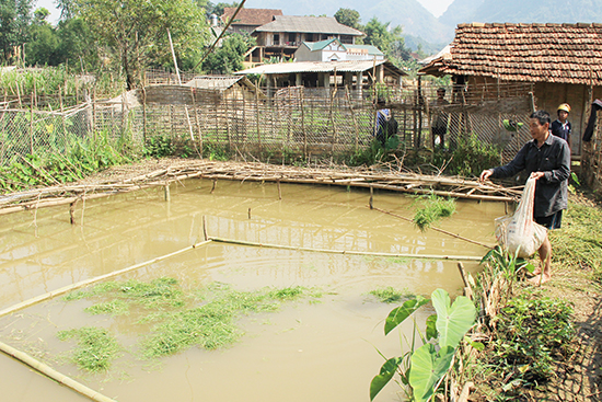 Vừa đến đầu xã, ấn tượng với hệ thống ao nuôi cá, được chia thành từng ô san sát theo hộ gia đình. Tiếp chúng tôi, ông Quàng Văn Bảo, Chủ tịch UBND xã thông tin: Tận dụng nguồn nước ngầm dồi dào, nên nghề nuôi cá ở đây được người dân duy trì từ lâu, mang lại hiệu quả kinh tế cao, là nguồn thu nhập đáng kể cho người dân nơi đây. Hiện, ở xã có hơn 500 hộ, chiếm 90% số hộ tham gia nuôi cá, mà chủ yếu là cá trắm cỏ, với diện tích gần 12 ha, hộ ít thì vài chục mét vuông, hộ nhiều đến cả nghìn mét vuông, bình quân mỗi năm sản lượng cá thịt xuất ra thị trường đạt 48 tấn.
