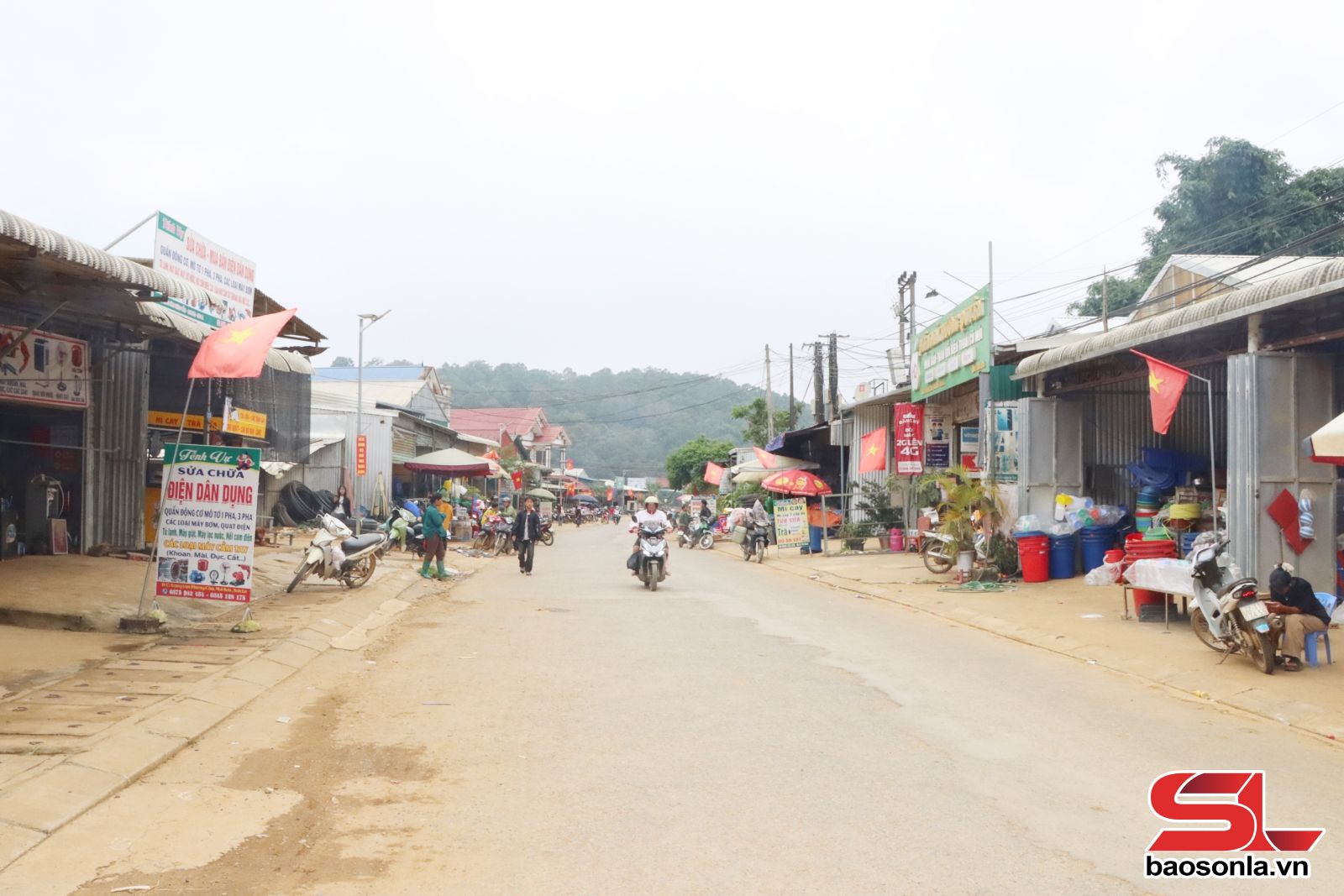 Trung tâm xã Phiêng Cằm hiện có đầy đủ các cửa hàng, phong phú về chủng loại hàng hóa, hoạt động dưới nhiều hình thức bán buôn, bán lẻ, đại lý; người mua, bán tấp nập. Tại Cửa hàng may và bày bán thổ cẩm của gia đình chị Sồng Thị Cở, bản Nong Tầu Thái có đông người đến đặt và mua hàng. Chị Cở cho biết: Mỗi tháng, sản xuất và bán hơn 50 sản phẩm phụ kiện, trang phục dân tộc Mông, như: Áo, váy, thắt lưng, tạp dề, xà cạp quấn chân... phục vụ khách hàng trong xã và một số bản lân cận của xã Phiêng Pằn. Doanh thu hơn 120 triệu đồng/năm.