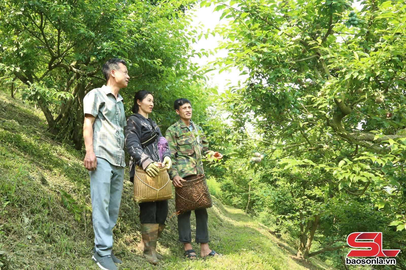 Rời HTX Kiên Cường, chúng tôi đến bản Cồn Huất, nơi nhiều hộ dân mạnh dạn đầu tư sản xuất mận sớm. Trong khu vườn rộng hơn 10 ha, gia đình anh Nguyễn Văn Năm đang vào vụ thu hoạch cao điểm. Những sọt mận chín sớm được thương lái đến tận vườn thu mua.