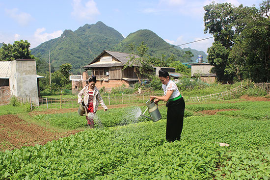 Nông dân bản Nà Càng, xã Thôm Mòn (Thuận Châu) chăm sóc rau sạch.