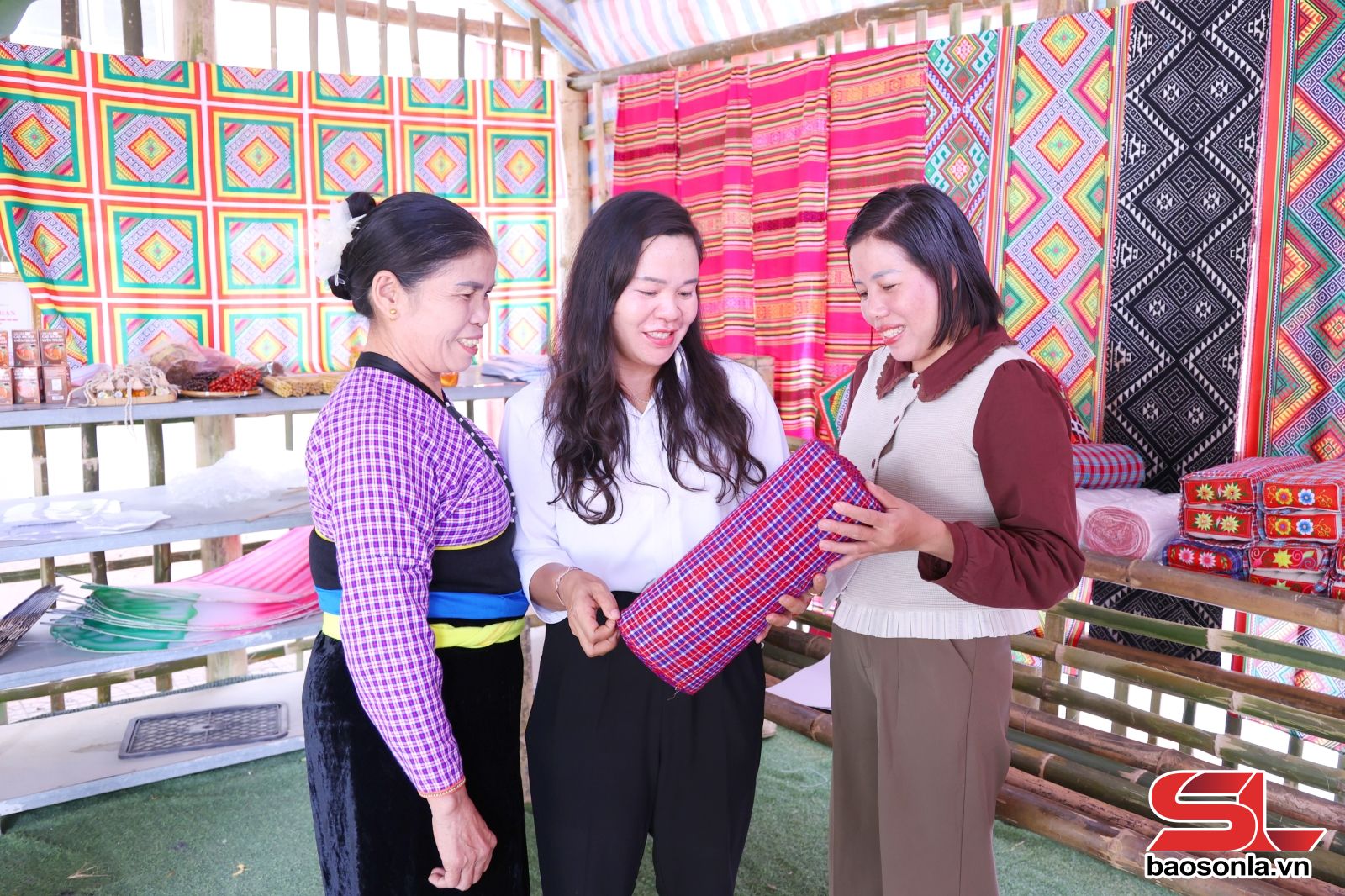Giới thiệu tiếp mô hình phát triển kinh tế về giữ gìn nghề dệt truyền thống của hộ bà Đinh Thị Hiền ở bản Nà Khằm. Hộ kinh doanh có nhiều mẫu đồ lưu niệm độc đáo từ vải thổ cẩm như áo cóm, gối, ghế, đệm... giúp biến sản phẩm thủ công thành hàng hóa có giá trị kinh tế, mang lại thu nhập ổn định cho gia đình. Bà Hiền chia sẻ: Nghề dệt thổ cẩm đã gắn bó với tôi hơn 20 năm. Ngoài việc tự dệt, tôi còn thu mua sản phẩm của chị em trong bản và mua thêm nguyên liệu vải, bông ở chợ. Mỗi tháng, tôi hoàn thiện khoảng 50 chiếc gối, 20 chiếc ghế ngồi và 3-4 chiếc đệm đôi, vào mùa cưới thì số lượng còn tăng hơn. Nhờ đó, gia đình bà có thu nhập ổn định từ 8-10 triệu đồng mỗi tháng.
