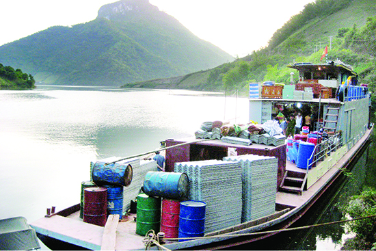 Thuyền chở các mặt hàng thiết yếu tới các phiên chợ vùng lòng hồ.