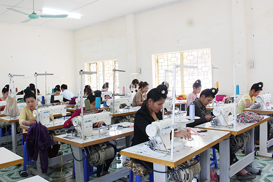 Công nhân Nhà máy may Mường La trong ca sản xuất.