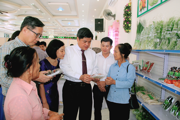trưng bày sản phẩm rau, quả an toàn của huyện Mộc Châu.