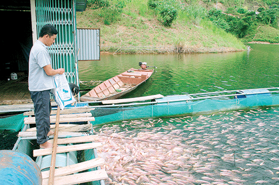 Nông dân xã Mường Trai (Mường La) đầu tư nuôi cá lồng trên lòng hồ thủy điện Sơn La.