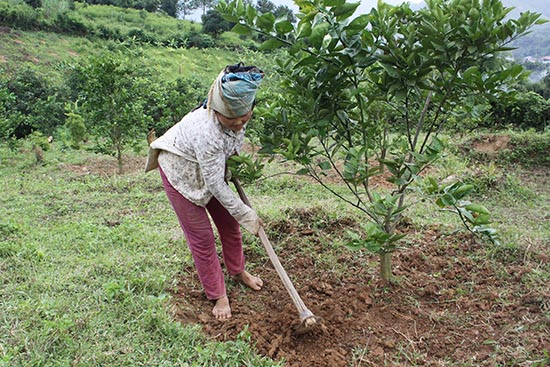 Nhân dân bản Chiềng Tè, thị trấn Ít Ong (Mường La) chăm sóc cây ăn quả.