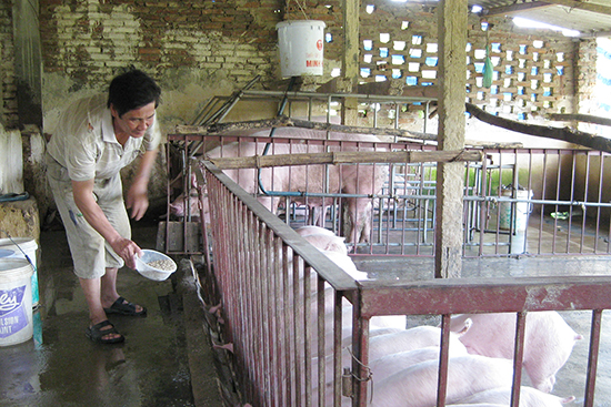 Mô hình nuôi lợn siêu nạc tại bản Đoàn Kết, xã Mường Bon (Mai Sơn).Ảnh: Minh Đức.
