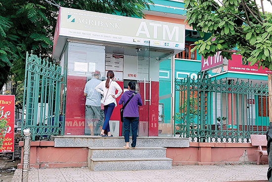 Nhân dân trên địa bàn thị trấn Phù Yên sử dụng dịch vụ tại máy rút tiền ATM.