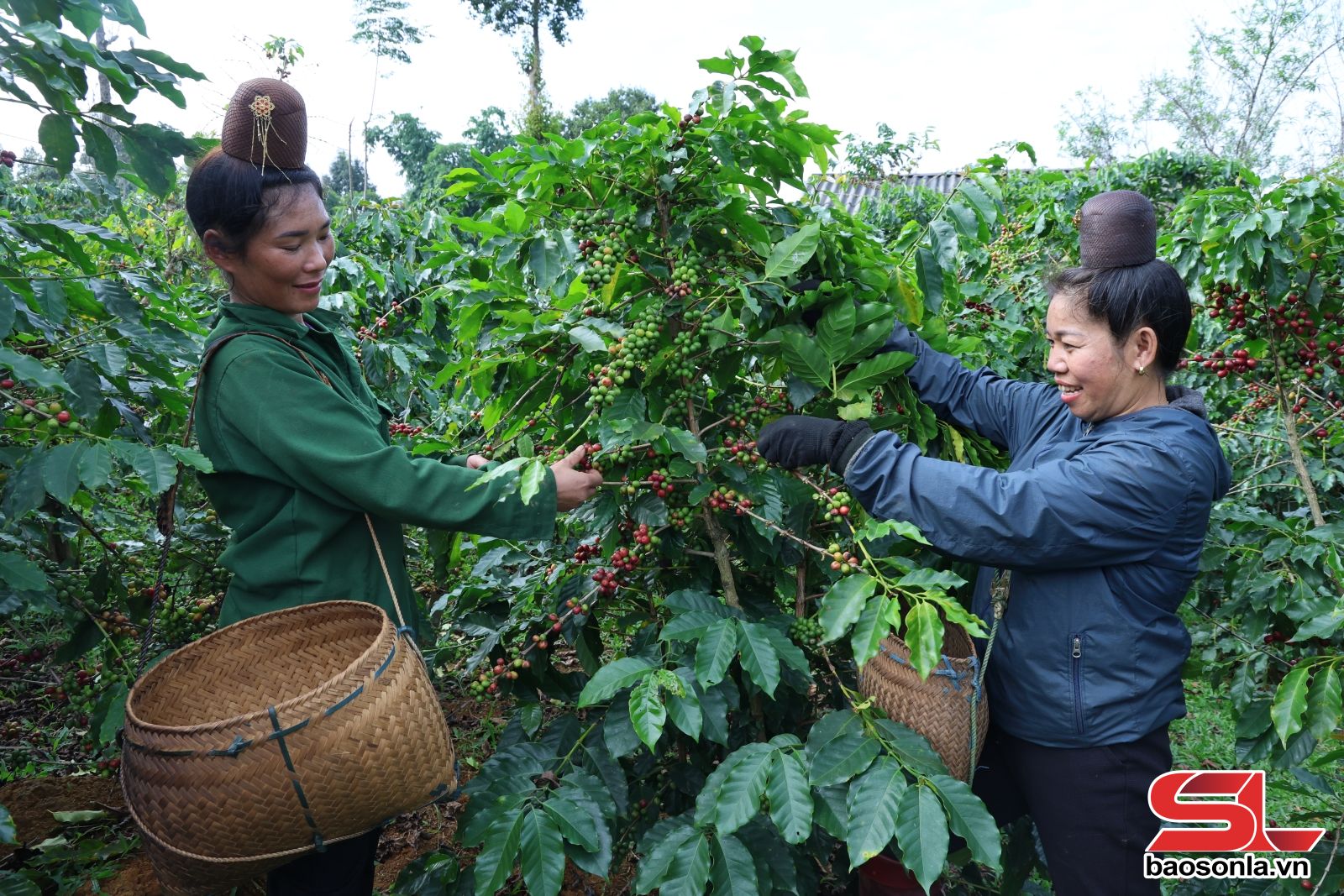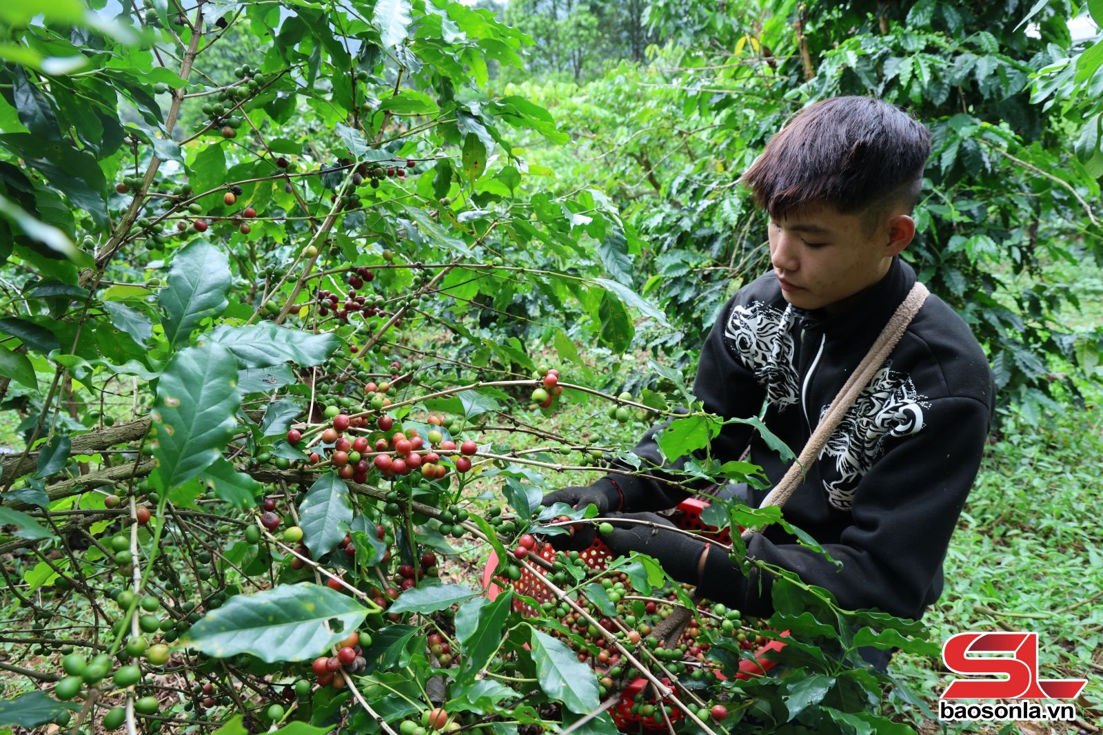 Nông dân xã Muổi Nọi thu hái cà phê Arabica.