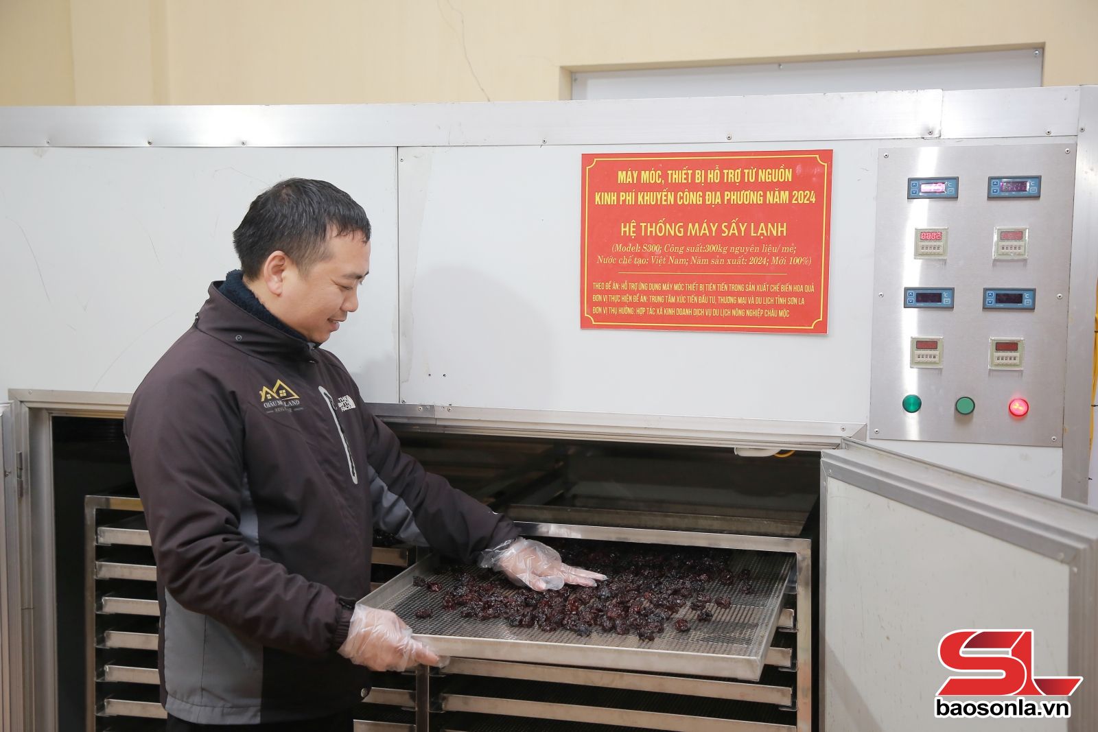 Chị Hà Thị Thu Hiền, Giám đốc HTX Kinh doanh dịch vụ du lịch nông nghiệp Châu Mộc, cho biết: Cao nguyên Mộc Châu có nhiều sản phẩm nông sản đặc trưng nhưng chỉ có thể thu hoạch theo mùa vụ. Với mong muốn có sản phẩm bán quanh năm và đáp ứng nhu cầu thị trường, HTX đầu tư hệ thống máy sấy lạnh, nồi xào công nghiệp bán tự động, hệ thống kho lạnh… Qua đó, tăng năng suất và chất lượng chế biến, nâng cao giá trị kinh tế, tính cạnh tranh cho sản phẩm.