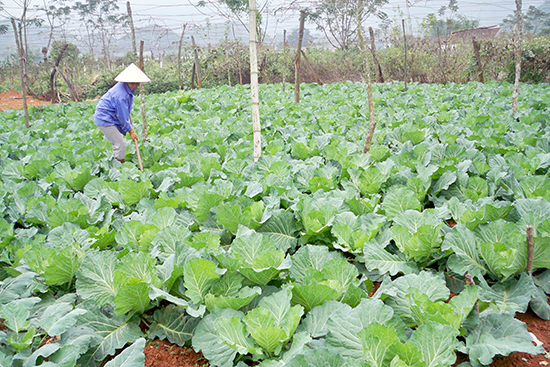 Xã viên HTX rau an toàn Tự Nhiên chăm bón vườn rau