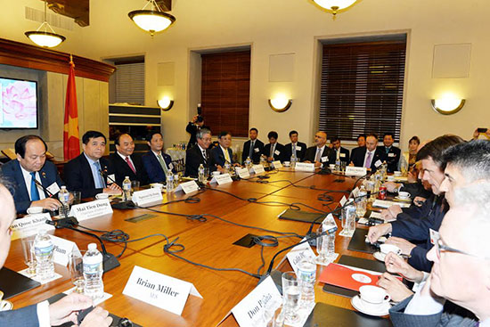 Phát biểu tại Tọa đàm với các tập đoàn, doanh nghiệp hàng đầu của Hoa Kỳ và Tiệc chào mừng do Phòng Thương mại Hoa Kỳ (USCC) và Hội đồng Doanh nghiệp Hoa Kỳ - ASEAN (USABC) đồng chủ trì, Thủ tướng Chính phủ Nguyễn Xuân Phúc hoan nghênh doanh nghiệp Hoa Kỳ lựa chọn đến với Việt Nam, khẳng định Việt Nam tiếp tục quyết tâm đổi mới, hội nhập quốc tế và thực thi những biện pháp theo tiêu chuẩn thương mại công bằng. Việt Nam luôn coi thành công của doanh nghiệp Hoa Kỳ là thành công của Việt Nam. Thủ tướng lắng nghe, ghi nhận và trao đổi trực tiếp với các doanh nghiệp Hoa Kỳ về nhiều vấn đề mà các doanh nghiệp quan tâm.