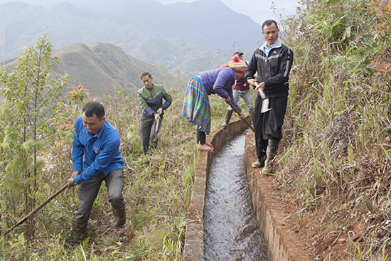 Nhân dân xã Xím Vàng ra quân làm thủy lợi.