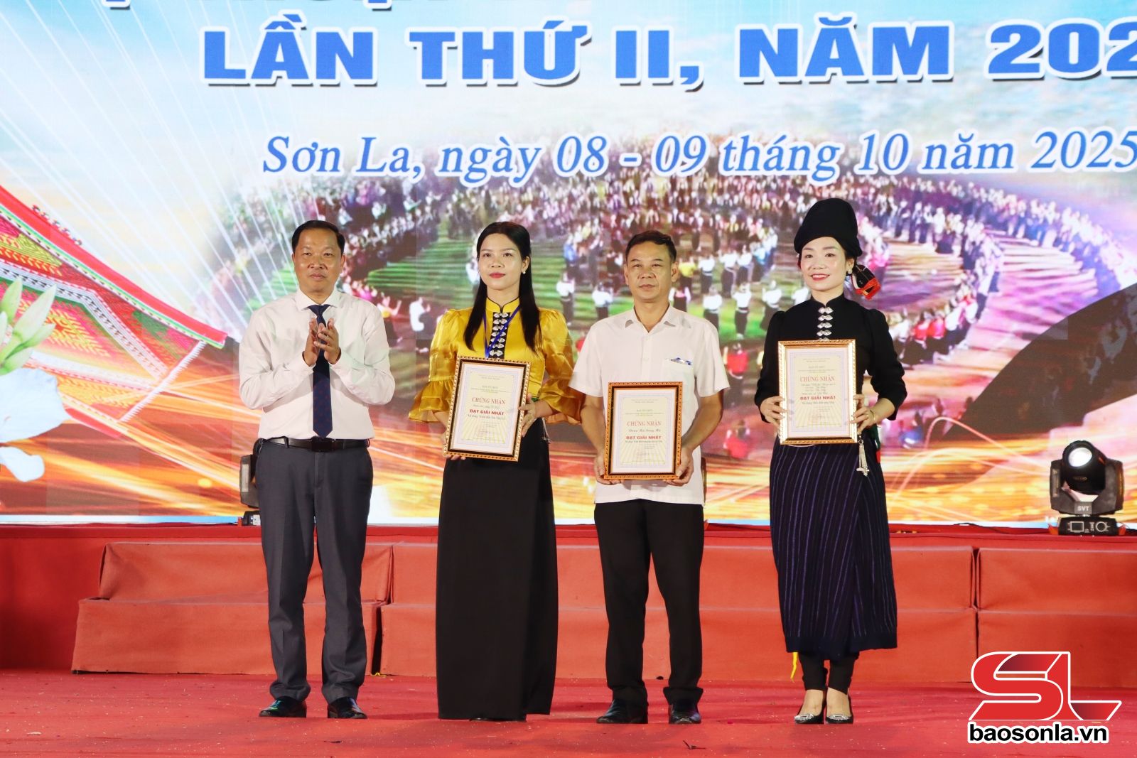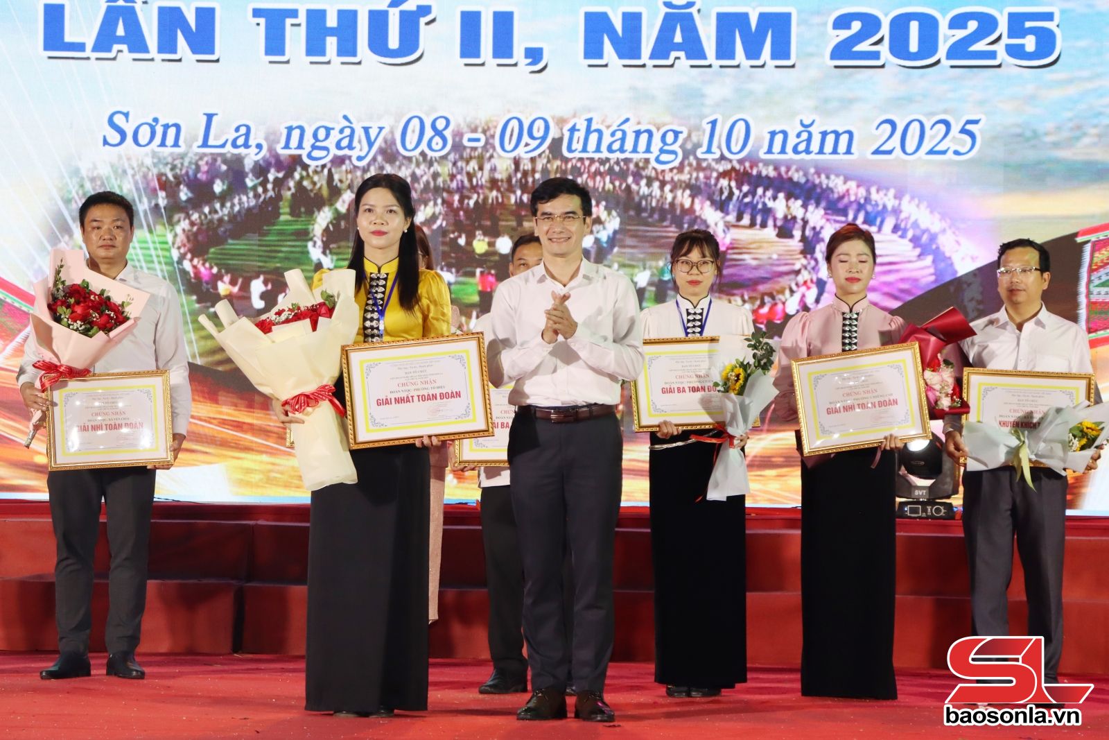 Tại lễ bế mạc, Ban Tổ chức đã trao 3 giải nhất từng nội dung thi cho 3 đội đến từ phường Tô Hiệu, Yên Châu và Sông Mã; trao 6 nhì; 9 giải ba và 21 giải khuyến khích cho các đội thi. Trao giải nhất toàn đoàn cho đoàn nghệ thuật quần chúng cho phường Tô Hiệu; 2 giải nhì toàn đoàn cho đoàn nghệ thuật quần chúng phường Chiềng Cơi, xã Yên Châu và trao 3 giải ba, 7 giải khuyến khích toàn đoàn cho các đoàn nghệ thuật.