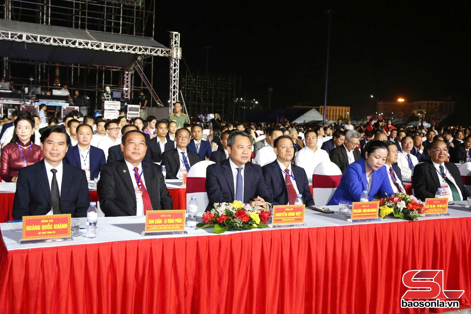 Tới dự có đồng chí Lê Minh Hoan, Ủy viên Ban Chấp hành Trung ương Đảng, Phó Chủ tịch Quốc hội nước Cộng hòa xã hội chủ nghĩa Việt Nam; đồng chí Tòng Thị Phóng, nguyên Ủy viên Bộ Chính trị, nguyên Phó Chủ tịch Thường trực Quốc hội nước Cộng hòa Xã hội Chủ nghĩa Việt Nam, nguyên Bí thư Tỉnh ủy Sơn La; các đồng chí lãnh đạo các ban, bộ, ngành Trung ương; Đoàn đại biểu Đại sứ quán Lào tại Việt Nam và Đoàn công tác các tỉnh Luông Nặm Thà, Hủa Phăn, Phông Sa Lỳ, U Đôm Xay, Xay Sổm Bun, Xiêng Khoảng, Bò Kẹo, Luông Pha Bang của nước Cộng hòa Dân chủ Nhân dân Lào; lãnh đạo một số tỉnh, thành phố.