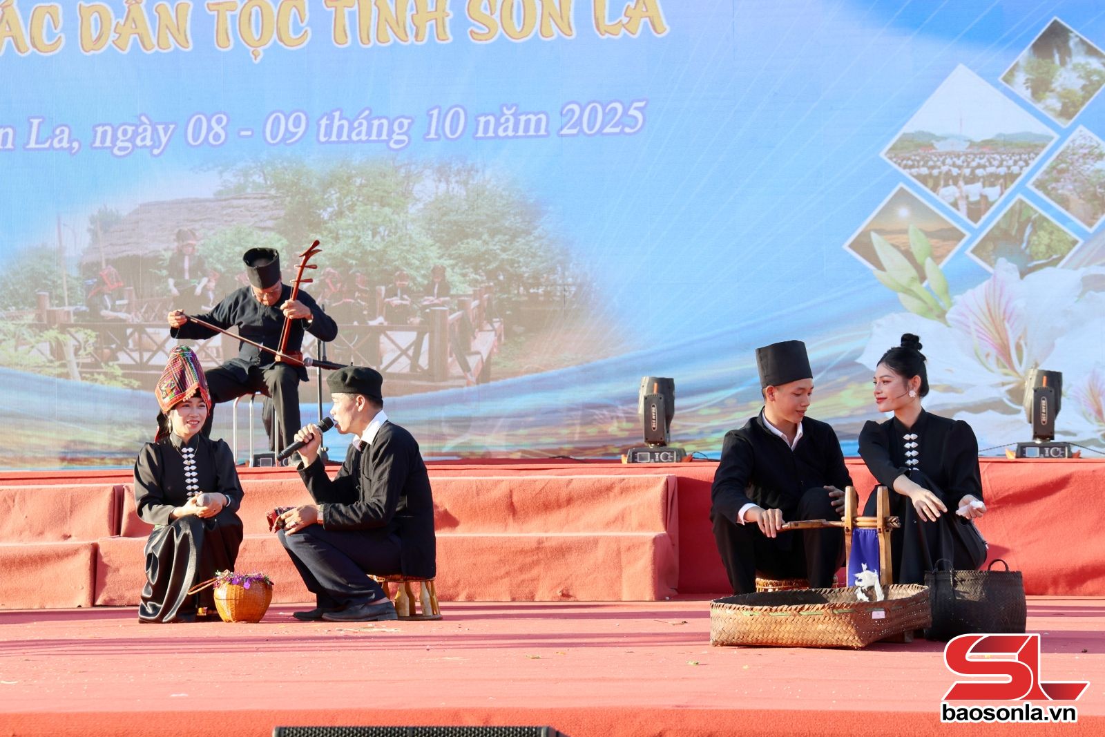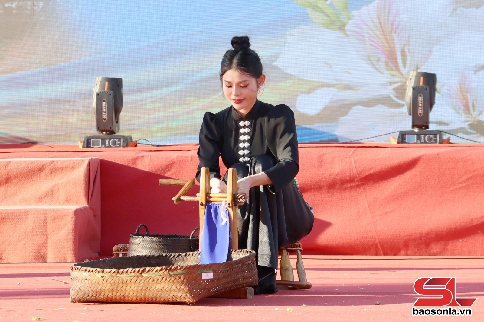 Tiếp tục Hội thi trình diễn trích đoạn lễ hội, nghi thức sinh hoạt văn hóa truyền thống các dân tộc tỉnh Sơn La, chiều 9/10, tại khu Ao cá Bác Hồ, các nghệ nhân, diễn viên quần chúng phường Chiềng Cơi đã trình diễn trích đoạn Lễ hội Hạn Khuống.