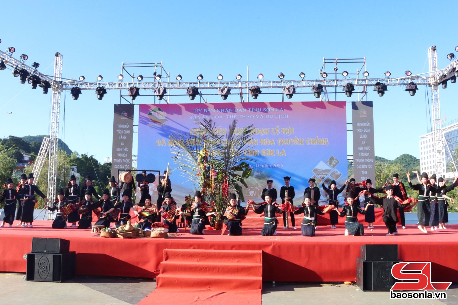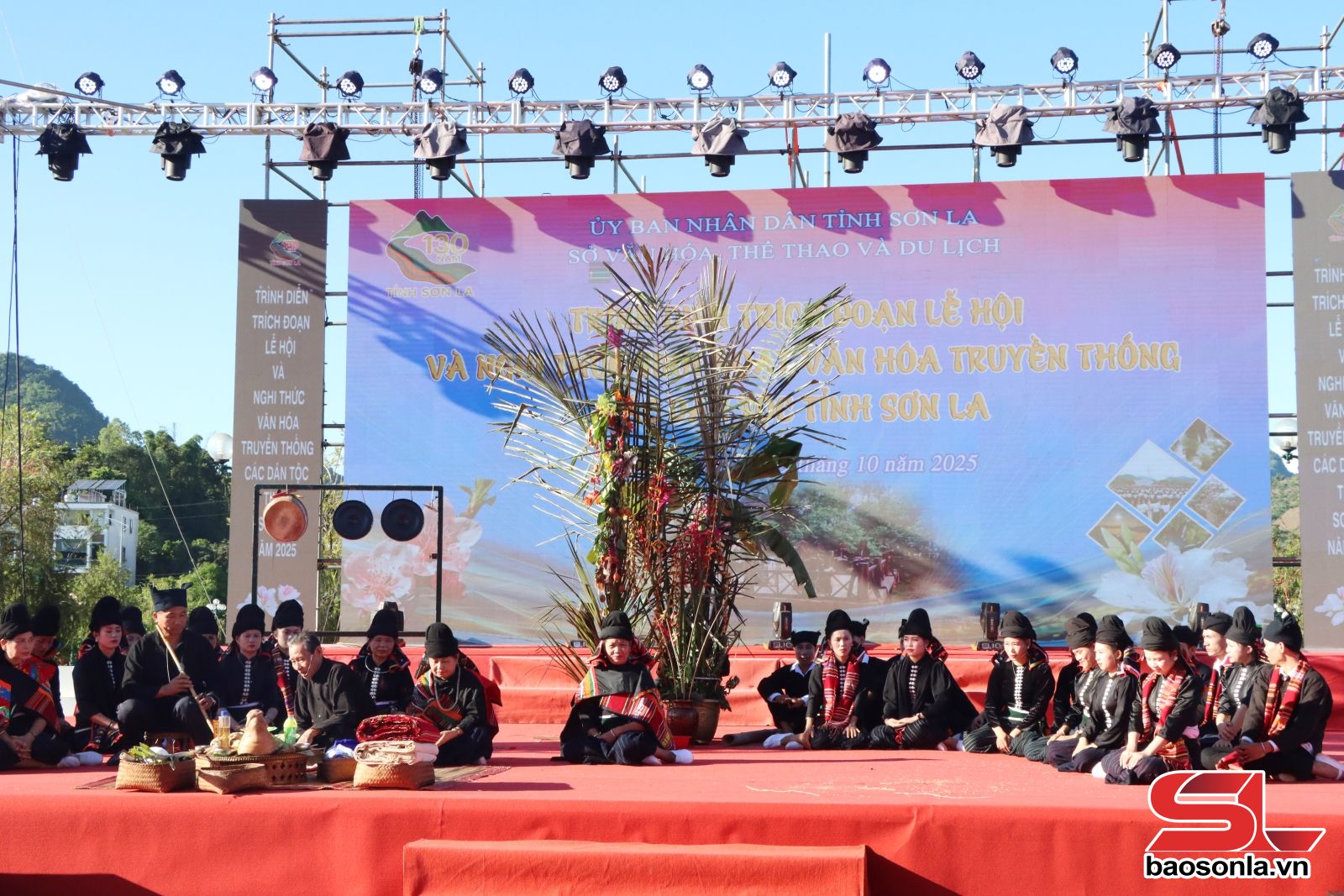 Tiếp tục Hội thi trình diễn trích đoạn lễ hội, nghi thức sinh hoạt văn hóa truyền thống các dân tộc tỉnh Sơn La, chiều 9/10, các nghệ nhân, diễn viên quần chúng xã Yên Châu đã trình diễn trích đoạn Lễ hội Xên lẩu nó.