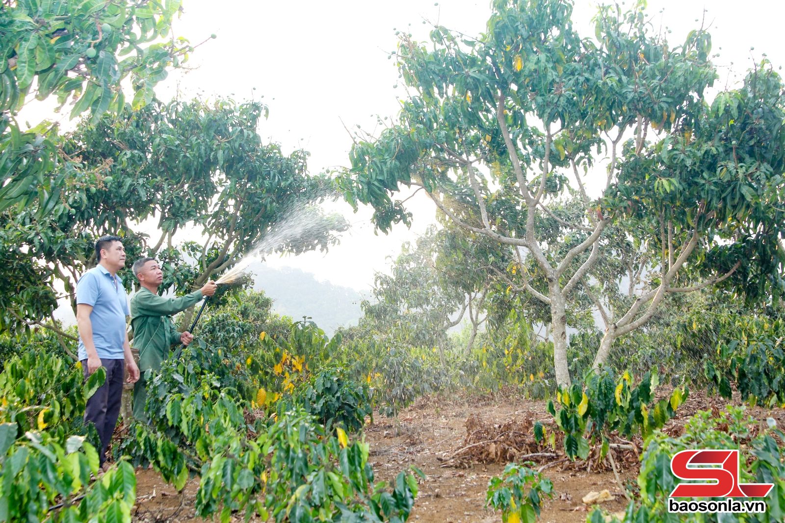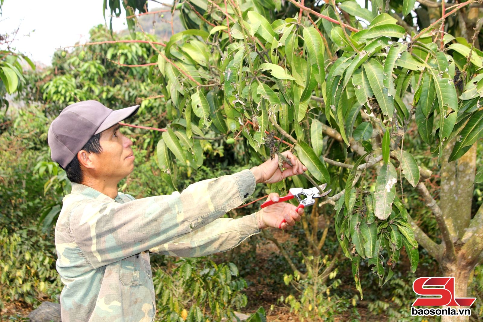 Hỗ trợ nông dân trồng xoài, Trung tâm Dịch vụ tổng hợp phường Chiềng Sinh đã cử cán bộ kỹ thuật xuống cơ sở, hướng dẫn bà con chăm sóc xoài theo từng giai đoạn. Ông Nguyễn Xuân Ước, Giám đốc Trung tâm Dịch vụ tổng hợp, cho biết: Ngay từ đầu vụ, đơn vị phối hợp với các bản tổ chức tuyên truyền, tập huấn kỹ thuật cho người dân. Trong giai đoạn xoài ra quả non, Trung tâm tập trung hướng dẫn bà con các biện pháp tỉa quả, bón phân hợp lý, nhận biết và phòng trừ sâu bệnh kịp thời. Đặc biệt, từ giữa tháng Tư trở đi, Trung tâm tập trung hướng dẫn bà con thực hiện kỹ thuật bọc quả trên diện rộng. Đây là giải pháp quan trọng, bảo vệ quả khỏi tác động của côn trùng gây hại, hạn chế sử dụng thuốc bảo vệ thực vật, giúp quả phát triển đồng đều, mẫu mã đẹp, đáp ứng yêu cầu của thị trường tiêu thụ.