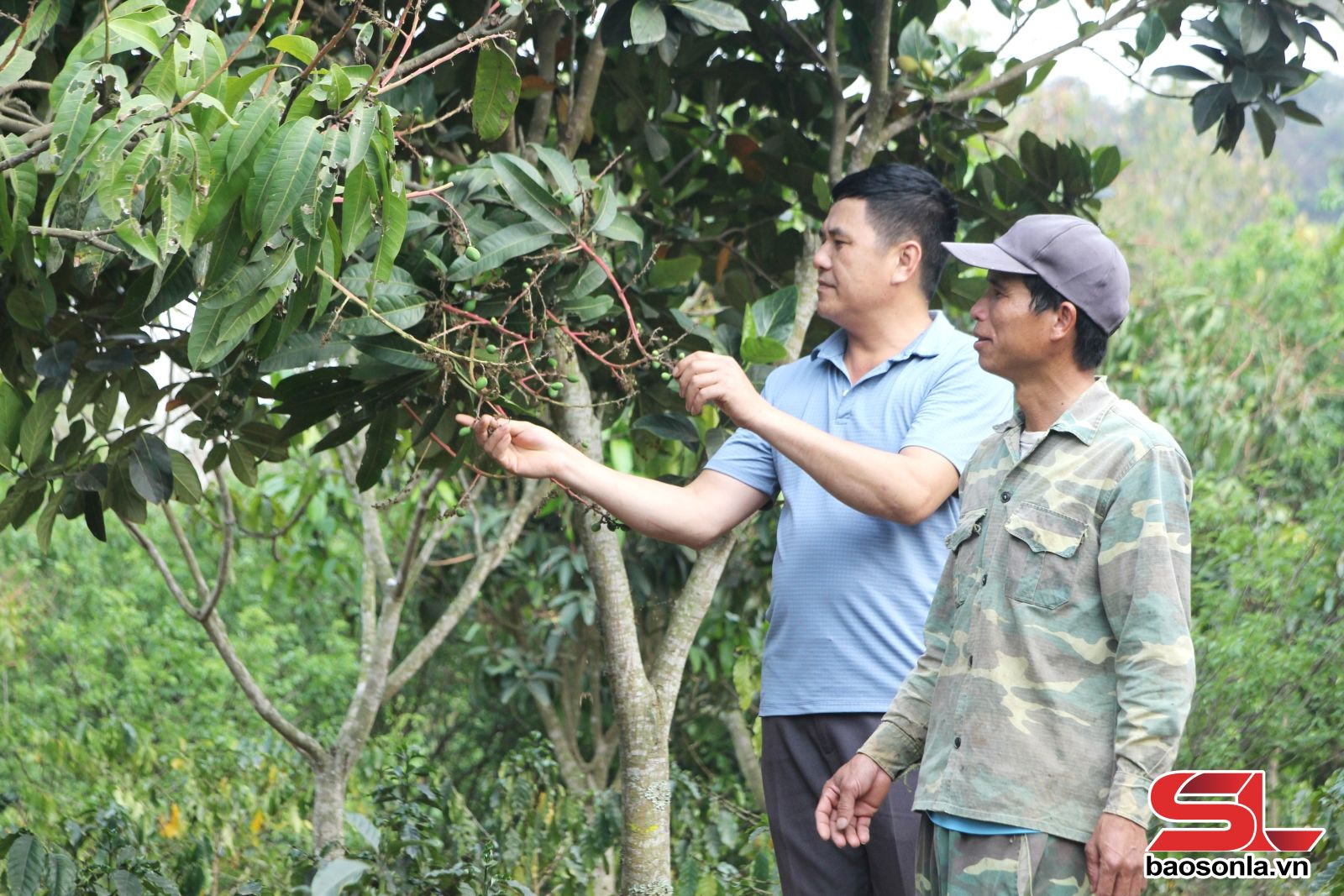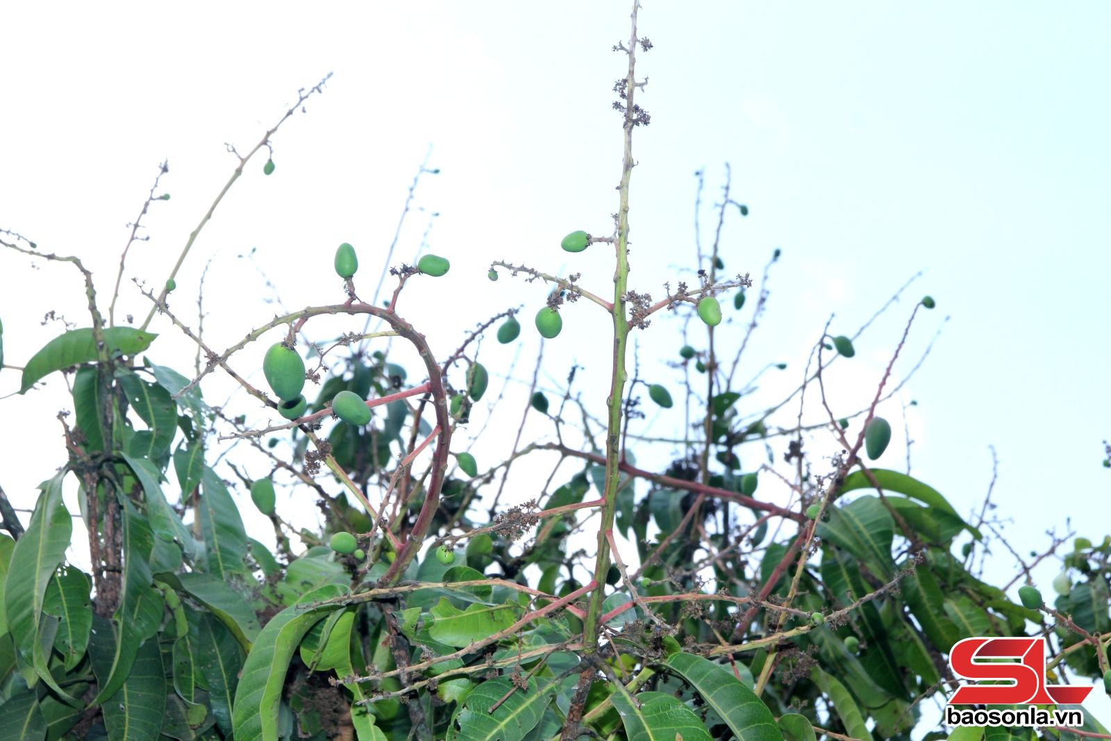 Tại bản Pát, gia đình ông Tòng Văn Kính cũng đang tập trung chăm sóc hơn 350 gốc xoài, trong đó, 190 gốc xoài Úc và 160 gốc xoài Đài Loan. Dẫn chúng tôi thăm vườn, ông Kính nói: Mỗi thời kỳ sinh trưởng của cây xoài đều có yêu cầu kỹ thuật riêng, nhưng giai đoạn quả non luôn được coi là then chốt. Để hạn chế rụng quả sinh lý, gia đình chú trọng việc cung cấp đủ nước và dinh dưỡng cho cây. Đồng thời, sử dụng các chế phẩm sinh học để tăng sức đề kháng. Bên cạnh đó, việc vệ sinh vườn, phát quang cỏ dại, tạo độ thông thoáng cũng giúp hạn chế sự phát sinh của sâu bệnh. Đối với khâu bọc quả, gia đình tôi thường chuẩn bị sẵn vật tư từ sớm, đến thời điểm thích hợp có thể triển khai nhanh, đồng bộ, tránh để quả bị sâu bệnh xâm nhập.