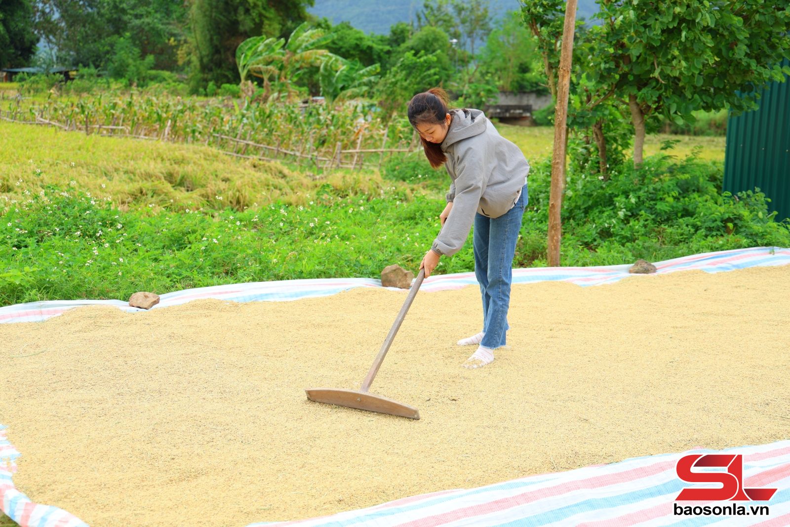 Còn tại tiểu khu Chiềng Thượng, 160 hộ thành viên của HTX Dịch vụ nông nghiệp Quang Huy hiện đang thâm canh 30 ha lúa theo hướng hữu cơ và liên kết với các hộ dân trong xã canh tác thêm gần 75 ha lúa. Bà Cầm Thị Ngân, Giám đốc HTX, cho biết: Ngay từ đầu vụ, chúng tôi được hỗ trợ từ dự án “Kết nối nông nghiệp: Nâng cao năng lực cho nông dân quy mô nhỏ thông qua thương mại minh bạch và bền vững” với sự tài trợ của Đại sứ quán Ireland. Các thành viên HTX được tập huấn kỹ thuật sản xuất lúa hữu cơ theo hướng giảm phát thải khí nhà kính; ứng dụng các biện pháp sinh học thay thế hóa học trong chăm sóc và phòng trừ sâu bệnh; hỗ trợ chế phẩm vi sinh xử lý rơm rạ tại đồng ruộng; ứng dụng eGAP vào quy trình chăm sóc...