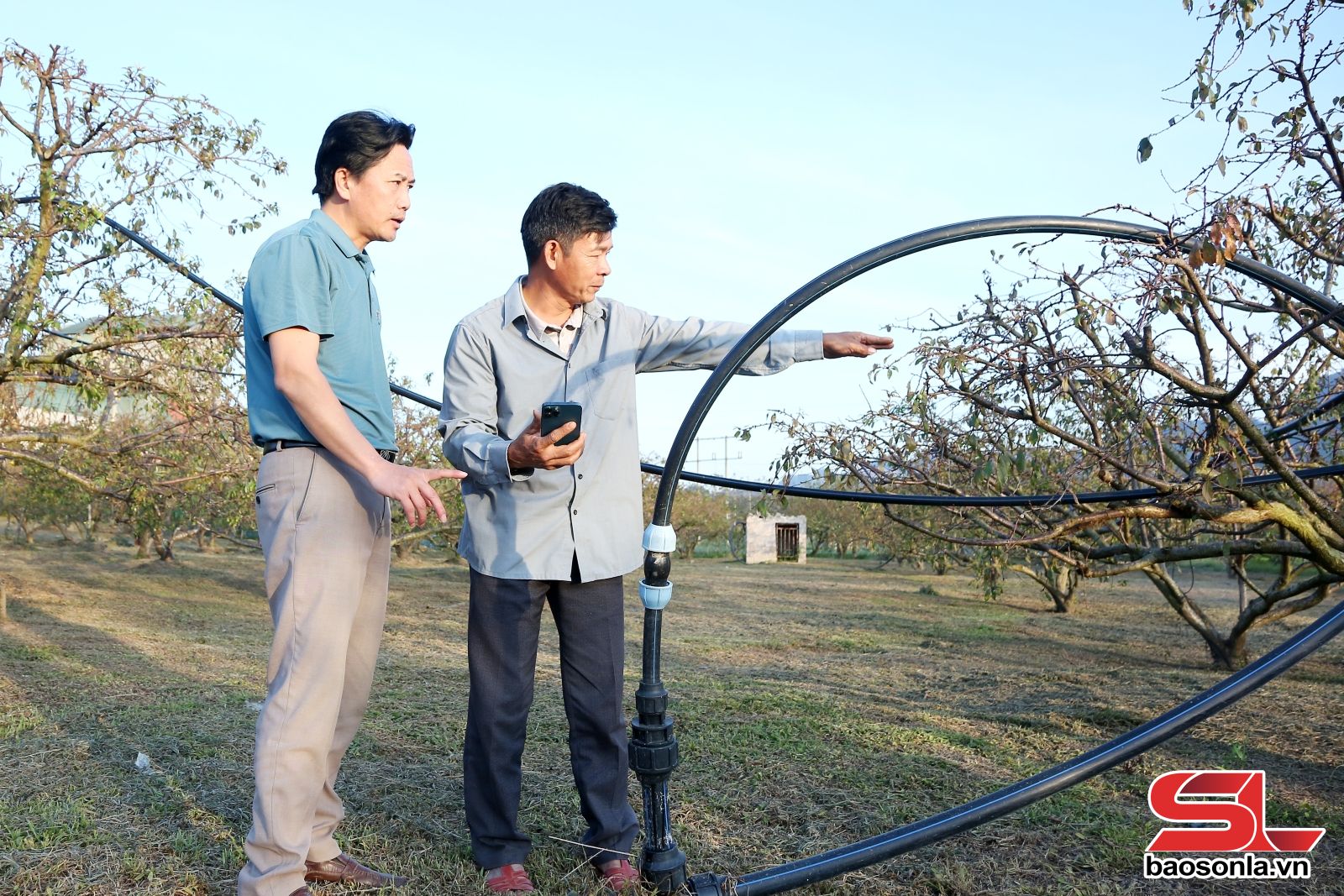 Chúng tôi tiếp tục tới HTX Tiến Đạt, thật ấn tượng với mô hình trồng mận trái vụ, rải vụ được triển khai bài bản, hiệu quả. Trên các triền đồi, hệ thống tưới ẩm tự động được kết nối thông qua điện thoại thông minh, cho phép người trồng điều khiển từ xa, tiết kiệm công lao động và nâng cao hiệu quả sản xuất. Hạ tầng vùng sản xuất cũng được đầu tư đồng bộ, các tuyến đường nội đồng và đường vào khu canh tác đều đã được bê tông hóa, thuận lợi cho chăm sóc và vận chuyển nông sản. Ông Trần Văn Hồng, Giám đốc HTX Tiến Đạt, cho biết: Hiện nay, mận của HTX đang trong giai đoạn ra hoa, đậu quả; dự kiến sau Tết Nguyên đán cho thu hoạch, sớm hơn chính vụ hai tháng, giúp nâng cao giá trị sản phẩm nhờ chênh lệch giá. Nhờ ứng dụng kỹ thuật rải vụ, mỗi năm 27 ha mận hậu của HTX cung ứng hơn 12 tấn mận trái vụ ra thị trường, giá bán 80.000-100.000 đồng/kg, mang về doanh thu gần 1 tỷ đồng. HTX mong muốn xây dựng thương hiệu “Mận Lóng Phiêng” trở thành sản phẩm đặc trưng, có chỗ đứng vững trên thị trường.
