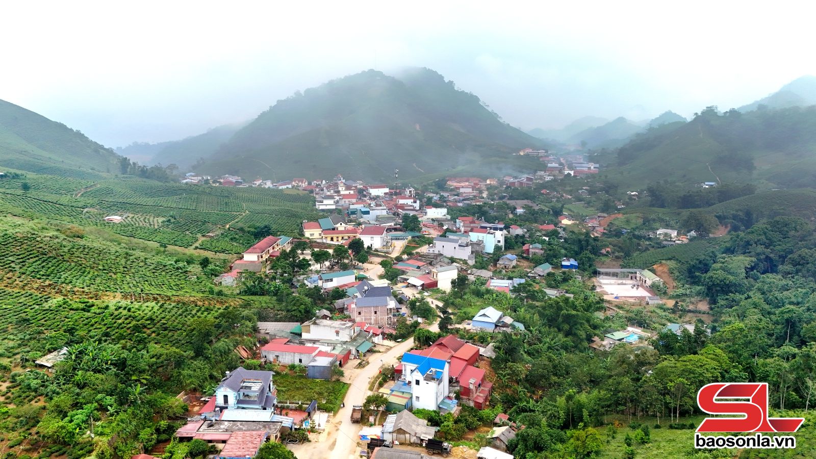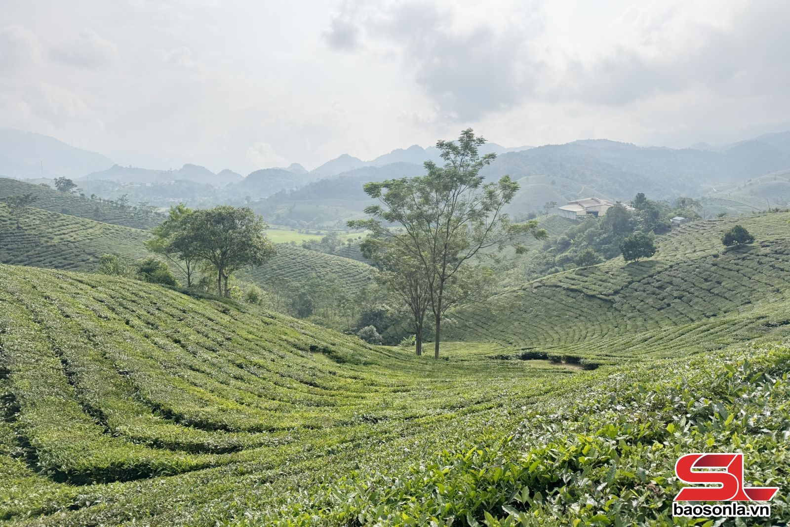 Từ trung tâm xã Vân Hồ chúng tôi vượt chặng đường hơn 20km qua dốc ba tầng quanh co, uốn lượn để đến xã Tô Múa. Vùng đất nơi này hiện lên những đồi chè hình bát úp xanh ngát, xen kẽ đồi cây ăn quả, bên những bản làng bình yên.