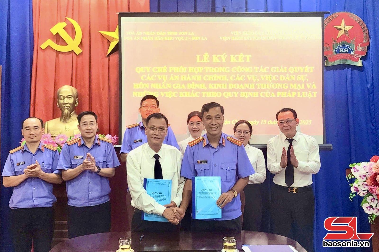 Bên cạnh đó, đơn vị tổ chức ký kết quy chế phối hợp với Tòa án nhân dân khu vực 2 - Sơn La trong giải quyết các vụ án hành chính, dân sự, kinh doanh thương mại, lao động và những việc khác theo quy định của pháp luật. Kết quả thực hiện quy chế phối hợp trong lĩnh vực dân sự tỷ lệ giải quyết án của Tòa án tăng 6,1%, mối quan hệ phối hợp giữa thẩm phán và kiểm sát viên ngày càng chặt chẽ, góp phần nâng cao chất lượng, tiến độ giải quyết vụ án.