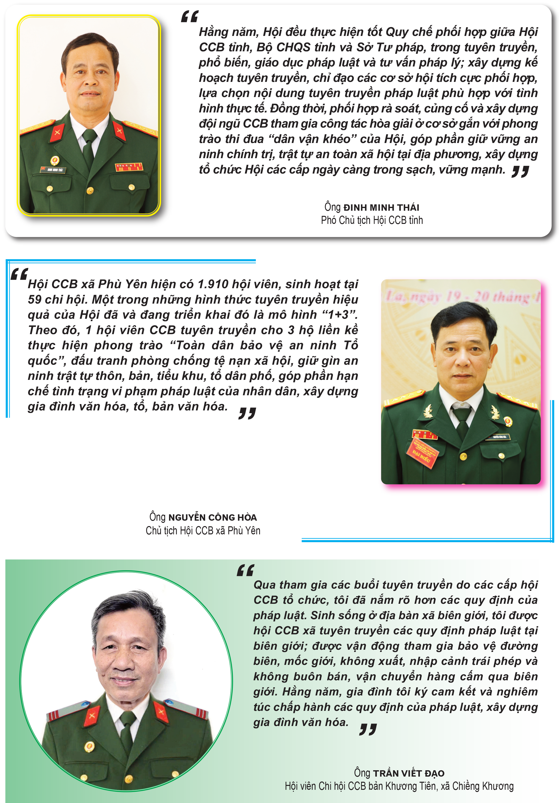 Bằng việc làm thiết thực, các cấp hội CCB trên địa bàn tỉnh đã tích cực đưa pháp luật vào cuộc sống, góp phần nâng cao ý thức chấp hành pháp luật của cán bộ, hội viên và nhân dân, xây dựng tổ chức hội vững mạnh, đóng góp quan trọng vào phát triển kinh tế - xã hội của địa phương.