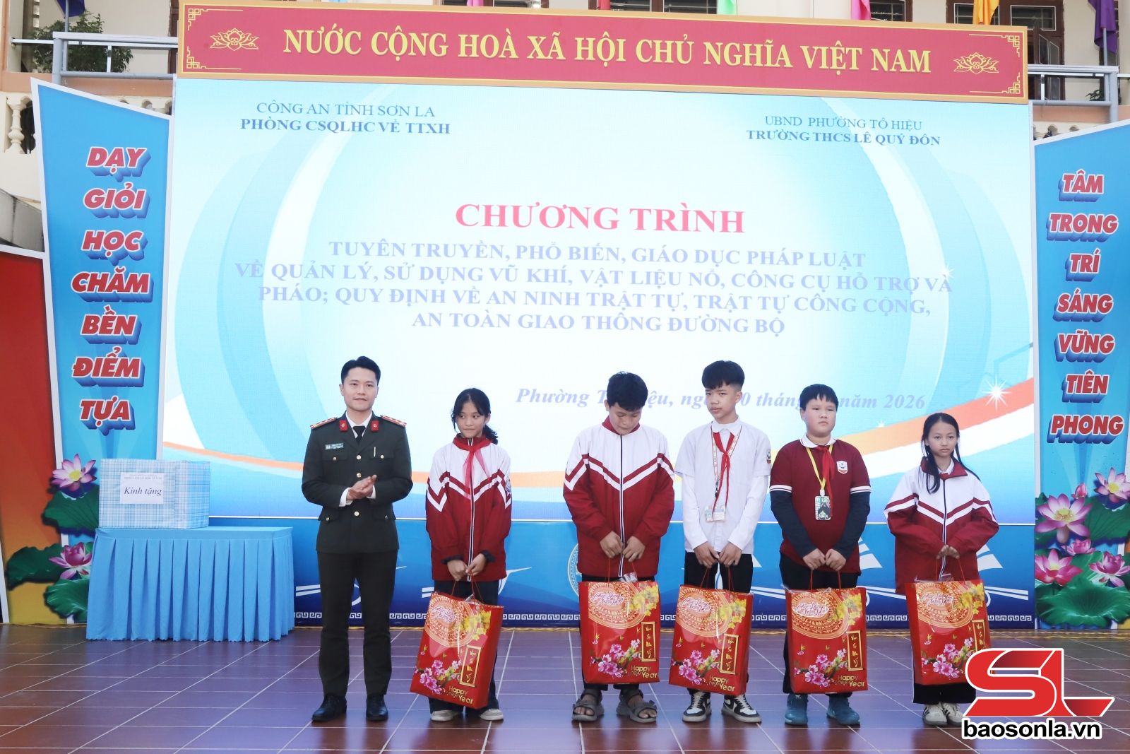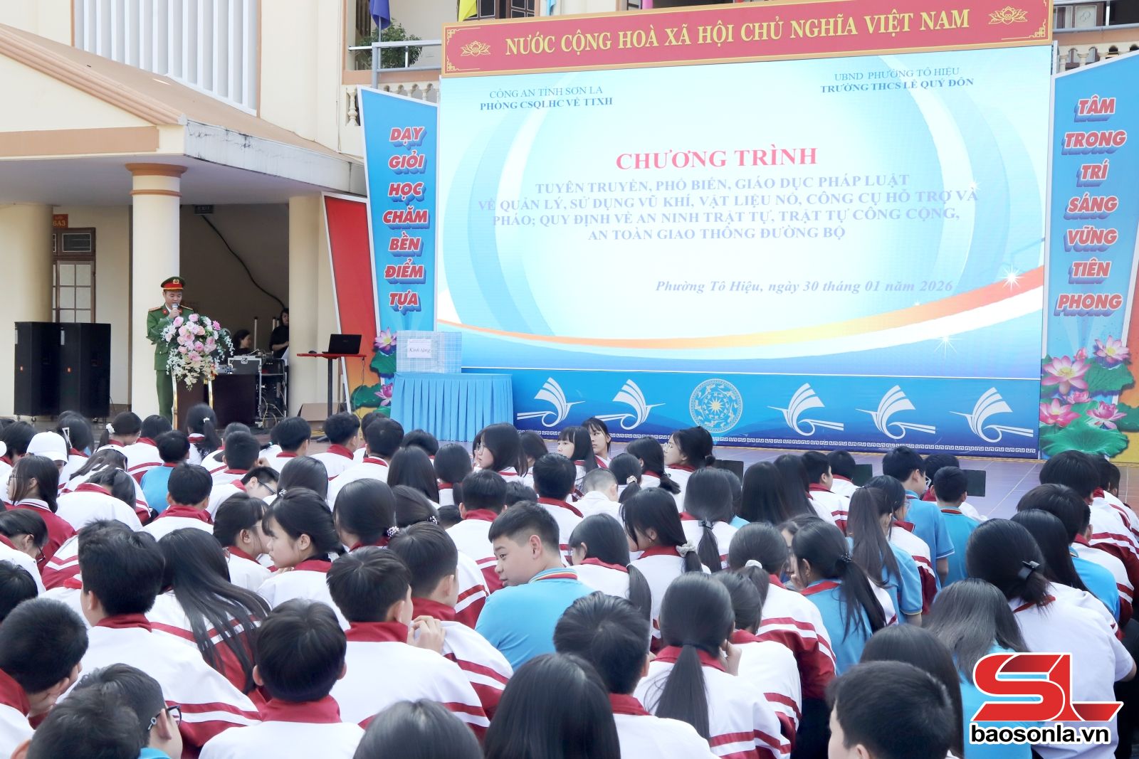 Ngày 30/1, Phòng Cảnh sát Quản lý hành chính về trật tự xã hội, Công an tỉnh đã phối hợp Trường THCS Lê Quý Đôn, phường Tô Hiệu tổ chức Chương trình tuyên truyền, phổ biến giáo dục pháp luật về quản lý, sử dụng vũ khí, vật liệu nổ, công cụ hỗ trợ và pháo; quy định về an ninh, trật tự công cộng, an toàn giao thông đường bộ cho hơn 1.200 cán bộ, giáo viên, học sinh nhà trường.