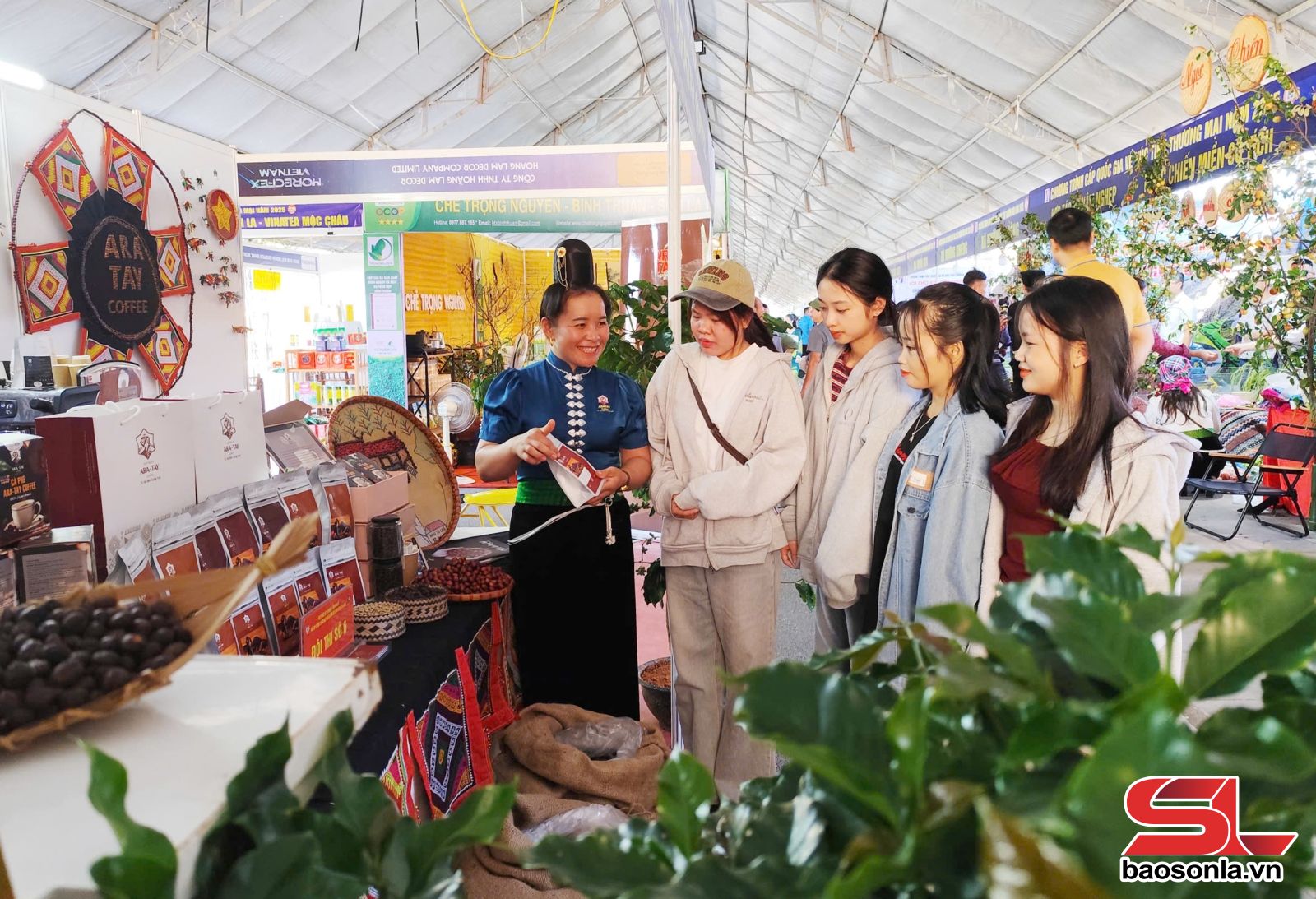 Còn tại xã Mường Chanh, chúng tôi ấn tượng đặc biệt với chị Cầm Thị Mòn và thương hiệu cà phê Ara-Tay. Chị Mòn chia sẻ: “Ara” là Arabica, “Tay” nghĩa là người Thái, cũng vừa có nghĩa là bàn tay. Ara-Tay có nghĩa là chỉ bàn tay cần cù, nâng niu của người phụ nữ Thái với cây cà phê Arabica. Chúng tôi muốn dùng Ara-Tay Coffee để kể về câu chuyện nỗ lực vươn lên của người phụ nữ Thái.