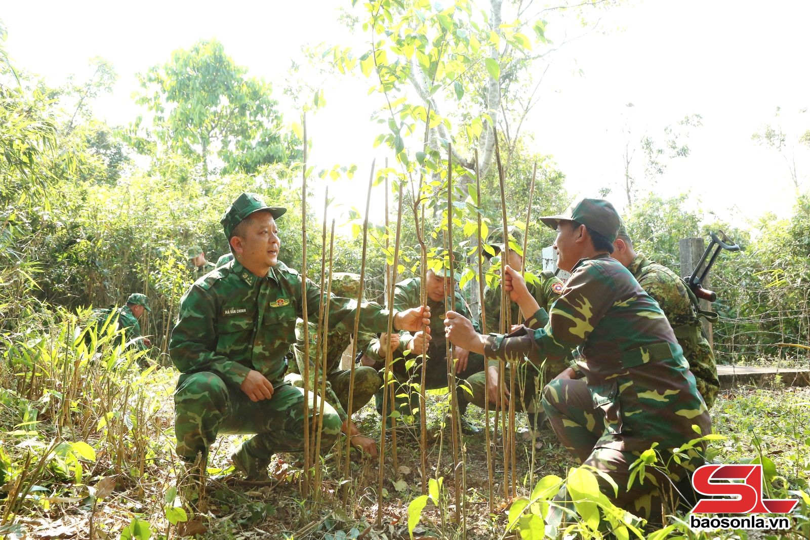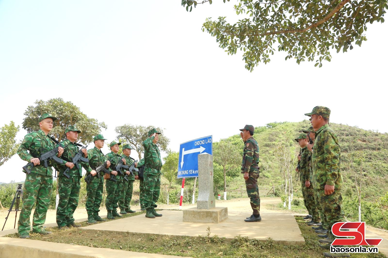 Những ngày đầu tháng 4, nắng phủ lên các sườn núi, sau hơn 3 giờ đồng hồ men theo những cung đường núi quanh co, chúng tôi có mặt tại bản Lao Khô 1, xã Phiêng Khoài, nơi đặt Trạm Kiểm soát Biên phòng Keo Muông để cùng tham gia buổi tuần tra song phương của lực lượng biên phòng hai bên.