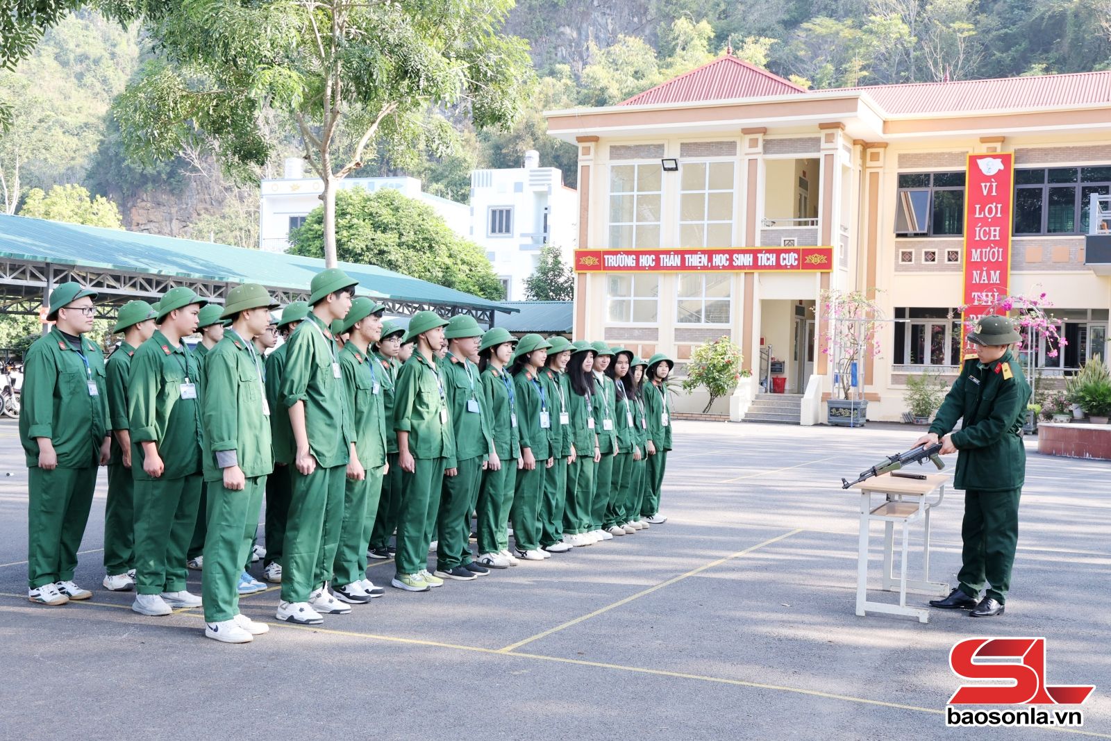 Kết quả xếp loại môn Giáo dục QP&AN của nhà trường: 100% học sinh đạt yêu cầu, trong đó, gần 99,8% học sinh được xếp loại Khá, Tốt. Những kết quả này, không chỉ phản ánh chất lượng chuyên môn của đội ngũ giáo viên giảng dạy môn Giáo dục QP&AN, còn cho thấy sự tiến bộ rõ rệt về ý thức kỷ luật, tinh thần rèn luyện, tác phong quân sự và bản lĩnh của học sinh nhà trường. Đặc biệt là kết quả tham gia Hội thao Giáo dục QP&AN học sinh THPT tỉnh Sơn La lần thứ VII, năm học 2024-2025. Với sự chuẩn bị nghiêm túc, khoa học và tinh thần quyết tâm cao của cả thầy và trò, nhà trường đã đạt: 1 giải nhất ở nội dung “Các tư thế vận động trong chiến đấu”; giải ba “Đội ngũ đơn vị”, giải ba “Đội ngũ từng người không có súng”; giải khuyến khích nội dung “Tháo lắp súng tiểu liên AK”; giải ba phần thi lý thuyết tìm hiểu chung. Đồng thời, đạt giải Ba toàn đoàn tại Hội thao.