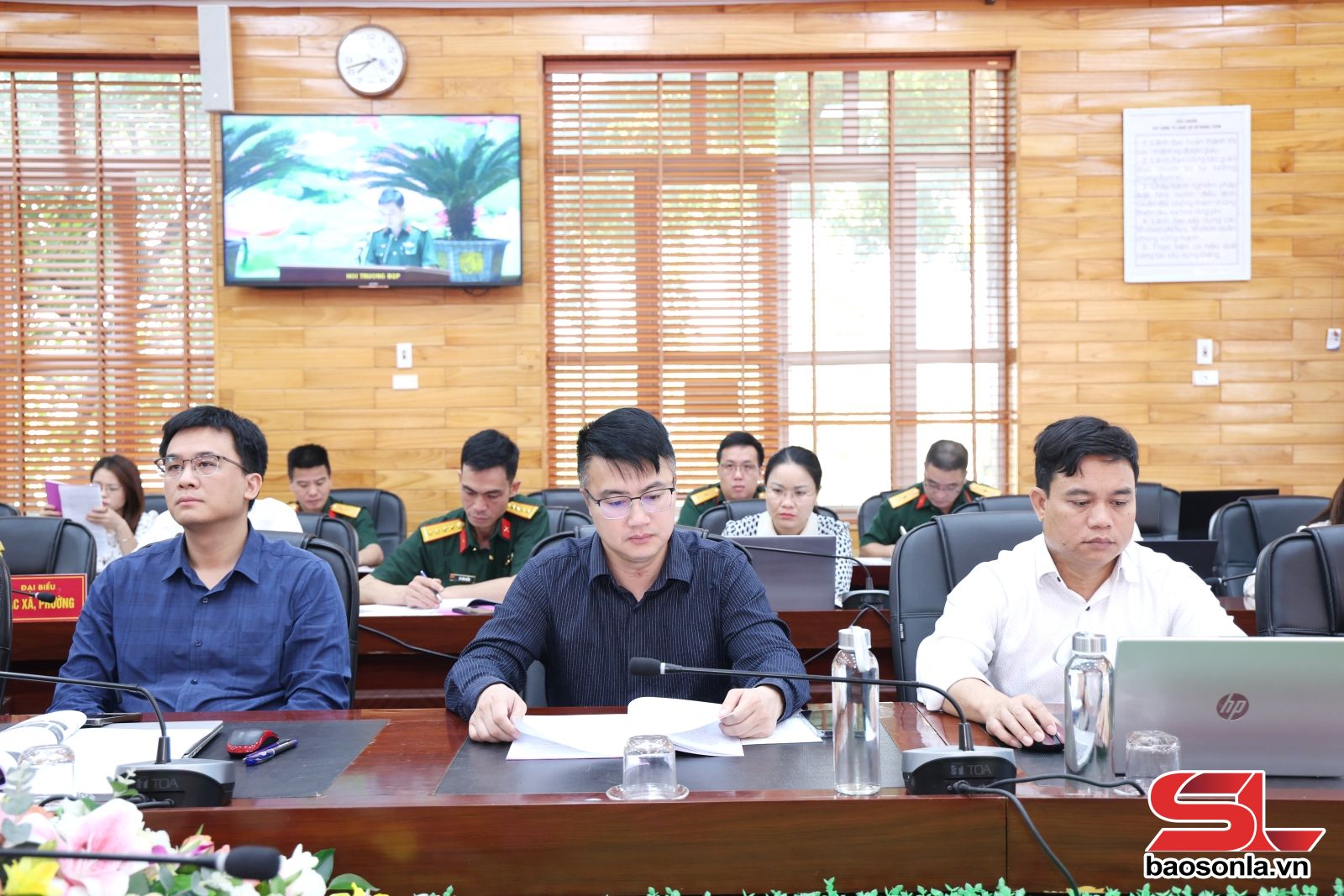 Dự hội nghị tại điểm cầu Bộ CHQS tỉnh Sơn La có các đồng chí thành viên Ban Chỉ đạo 515 tỉnh; lãnh đạo UBND, Ban CHQS xã, phường 12 xã, phường nơi quản lý nghĩa trang liệt sĩ.