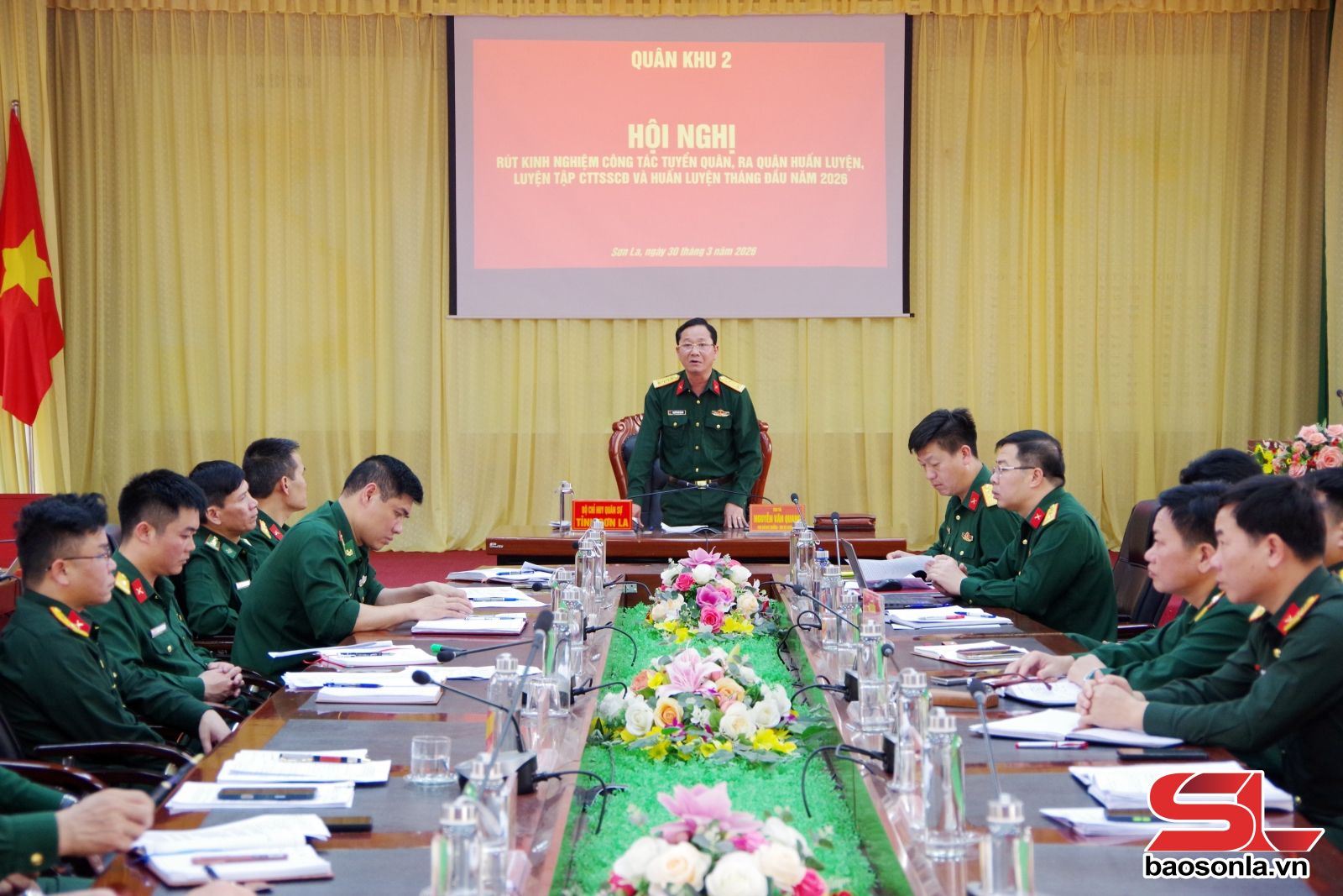 Chiều 30/3, Bộ Tư lệnh Quân khu 2 tổ chức Hội nghị rút kinh nghiệm công tác tuyển quân, ra quân huấn luyện, luyện tập chuyển trạng thái sẵn sàng chiến đấu và huấn luyện tháng đầu năm 2026 bằng hình thức trực tiếp kết hợp trực tuyến đến điểm cầu các đơn vị. Thiếu tướng Nguyễn Đăng Khải, Phó Tư lệnh, Tham mưu trưởng Quân khu chủ trì hội nghị. Dự hội nghị tại điểm cầu tỉnh Sơn La có lãnh đạo Bộ CHQS tỉnh và các cơ quan, đơn vị trực thuộc.
